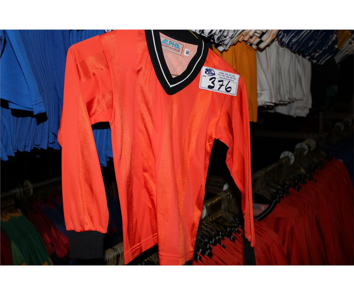 LOT OF 416 ORANGE STRIPED SOCCER JERSIES SOLD PER JERSEY, MUST TAKE ALL.