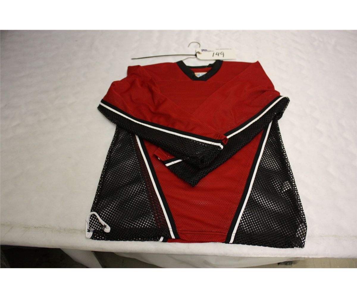 LOT OF 46 RED/BLACK ROLLER HOCKEY JERSIES SOLD PER JERSEY, MUST TAKE ALL