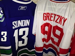LOT OF 4JERSIES INC: CANUCKS, CANUCKS, CANUCKS MATS SUNDIN AND WHA WAYNE GRETZKY 1979 ALL STAR JERSEY