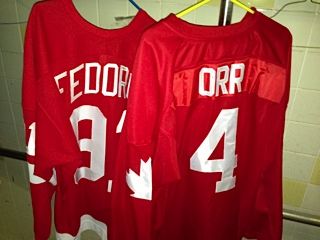 LOT OF 4JERSIES INC: TEAM CANADA BOBBY ORR, RED WINGS FEDEROV, PENGUINS CROSBY AND PENGUINS