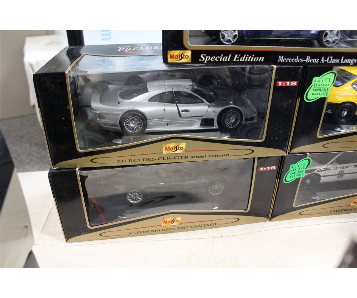 LOT OF 5- 1:18 SCALE DIE CAST. 4 MAISTO PREMIERE, 1 MAISTO SPECIAL EDITION