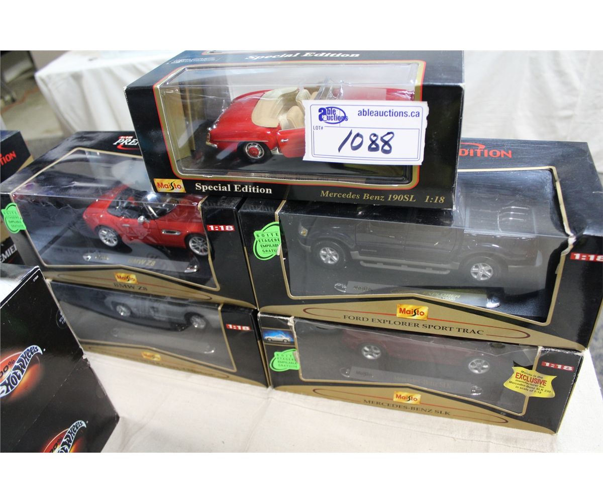 LOT OF 5- 1:18 SCALE DIE CAST. 4 MAISTO PREMIERE, 1 MAISTO SPECIAL EDITION