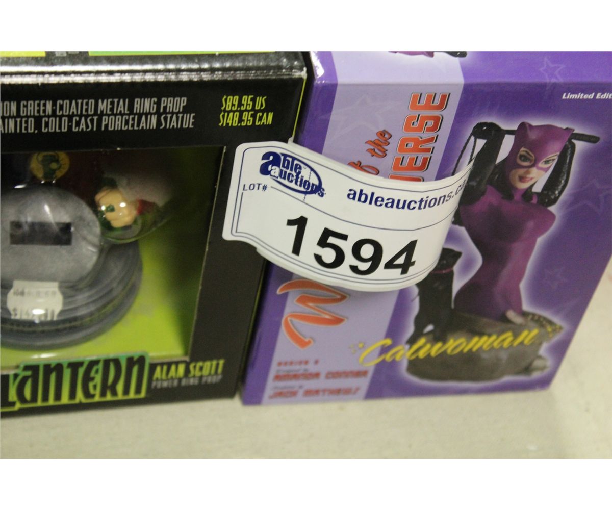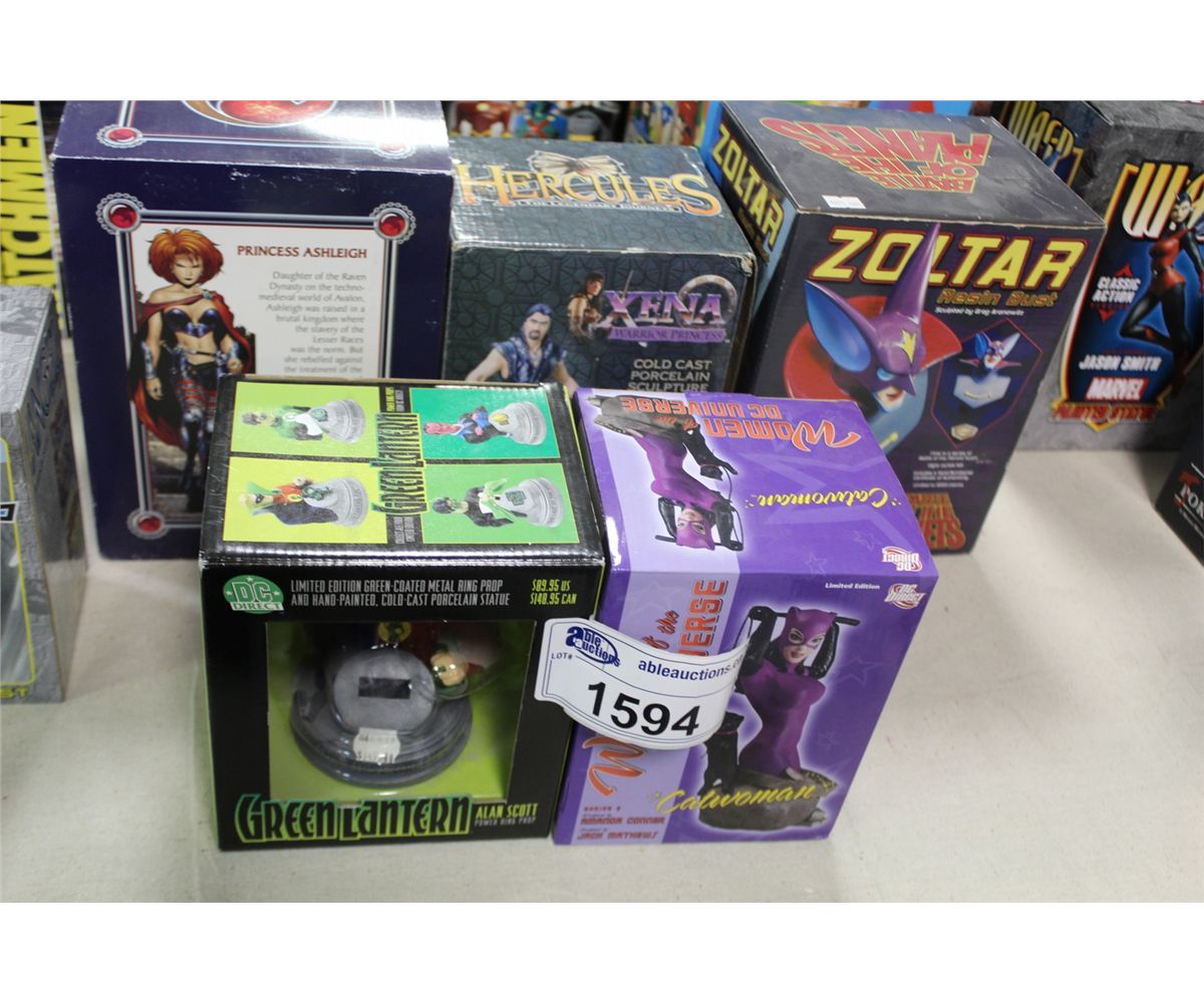 LOT OF 5 ASSORTED ACTION FIGURES AND BUSTS INC. GREEN LANTERN, CATWOMAN, ZOLTAR, XENA AND ASHLEIGH
