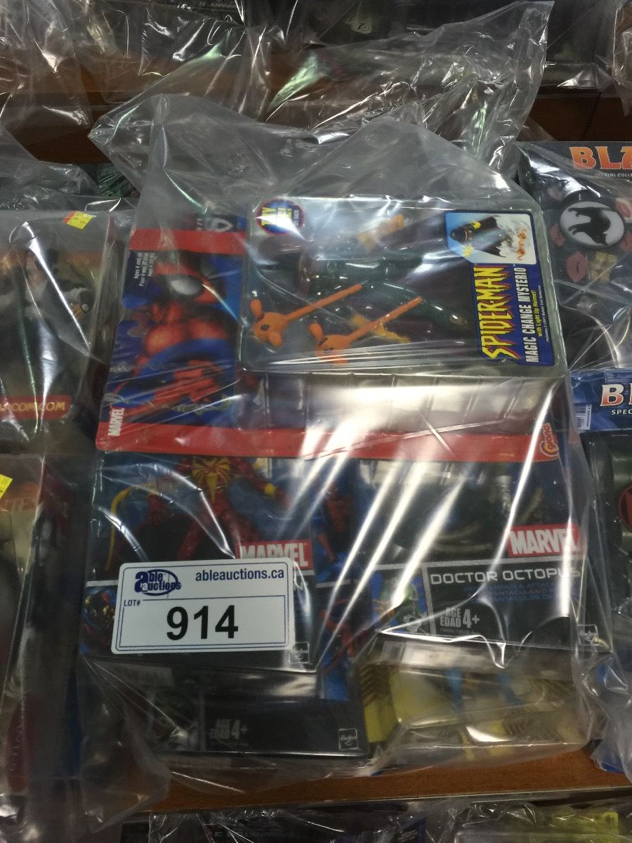 LOT OF 5 BAGS CONTAINING NEW IN THE BOX TOYS AND ACTION FIGURES