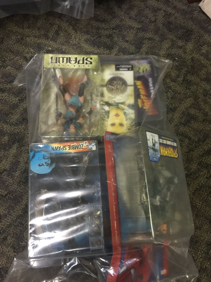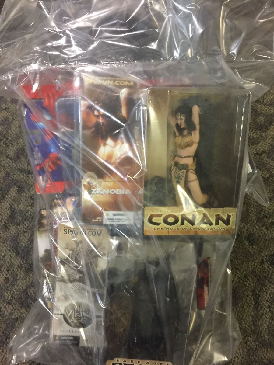 LOT OF 5 BAGS CONTAINING NEW IN THE BOX TOYS AND ACTION FIGURES