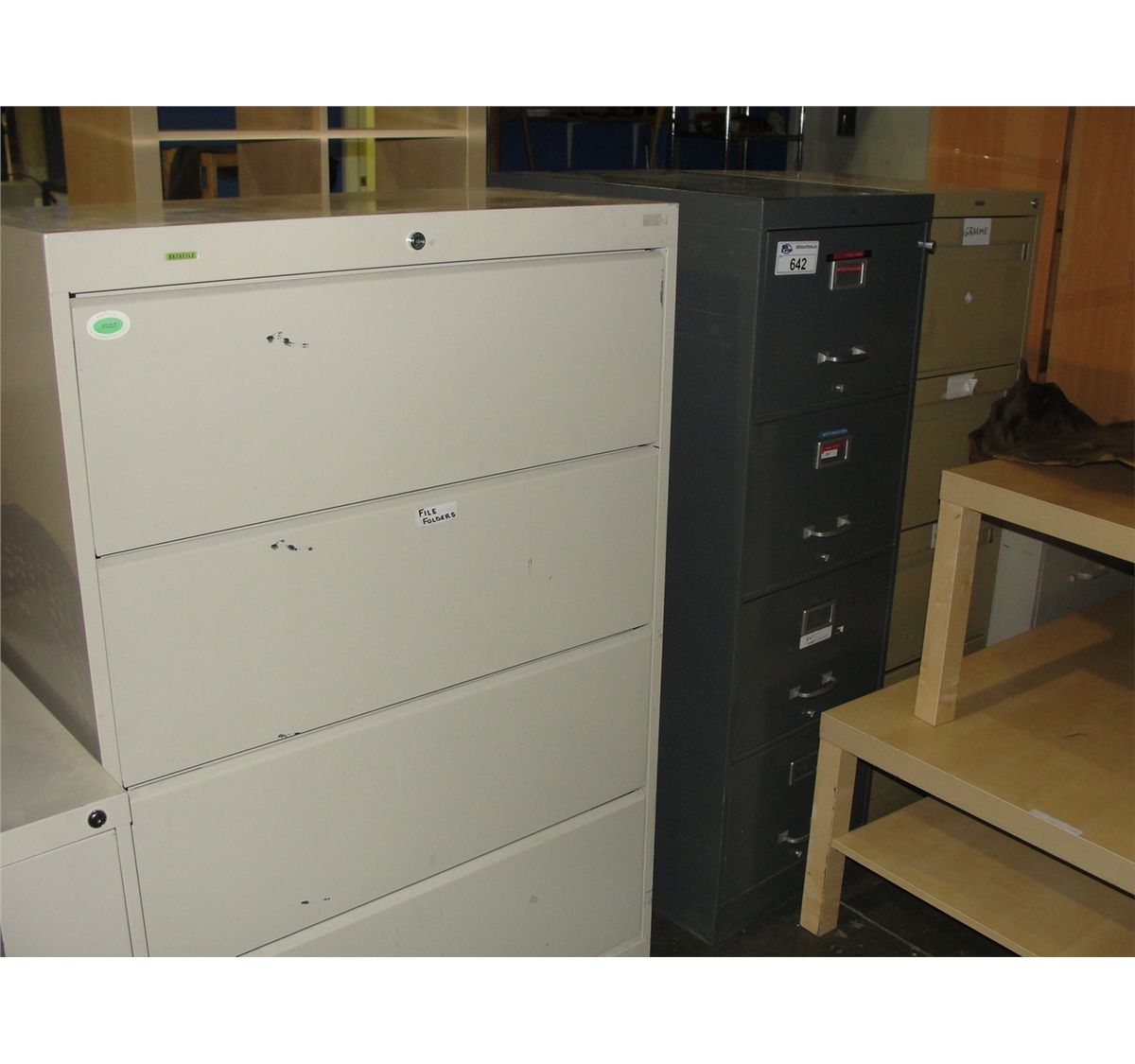 LOT OF 5 FILING CABINETS AND ONE METAL CABINET