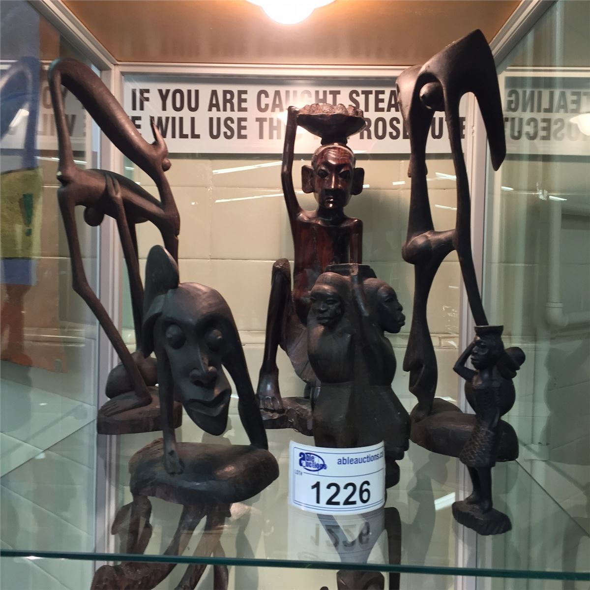LOT OF 5 HAND CARVED AFRICAN SCULPTURES