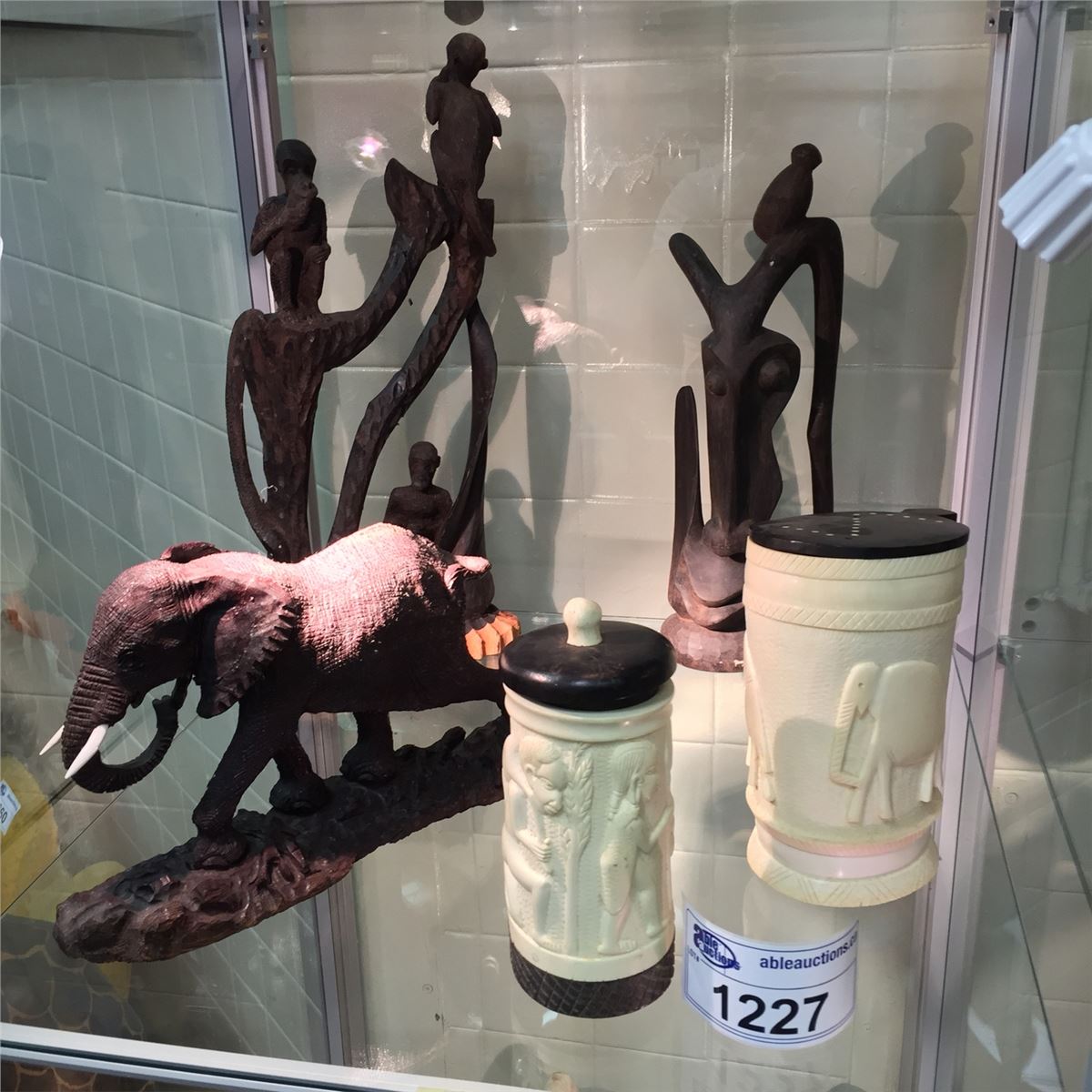 LOT OF 5 HAND CARVED AFRICAN SCULPTURES