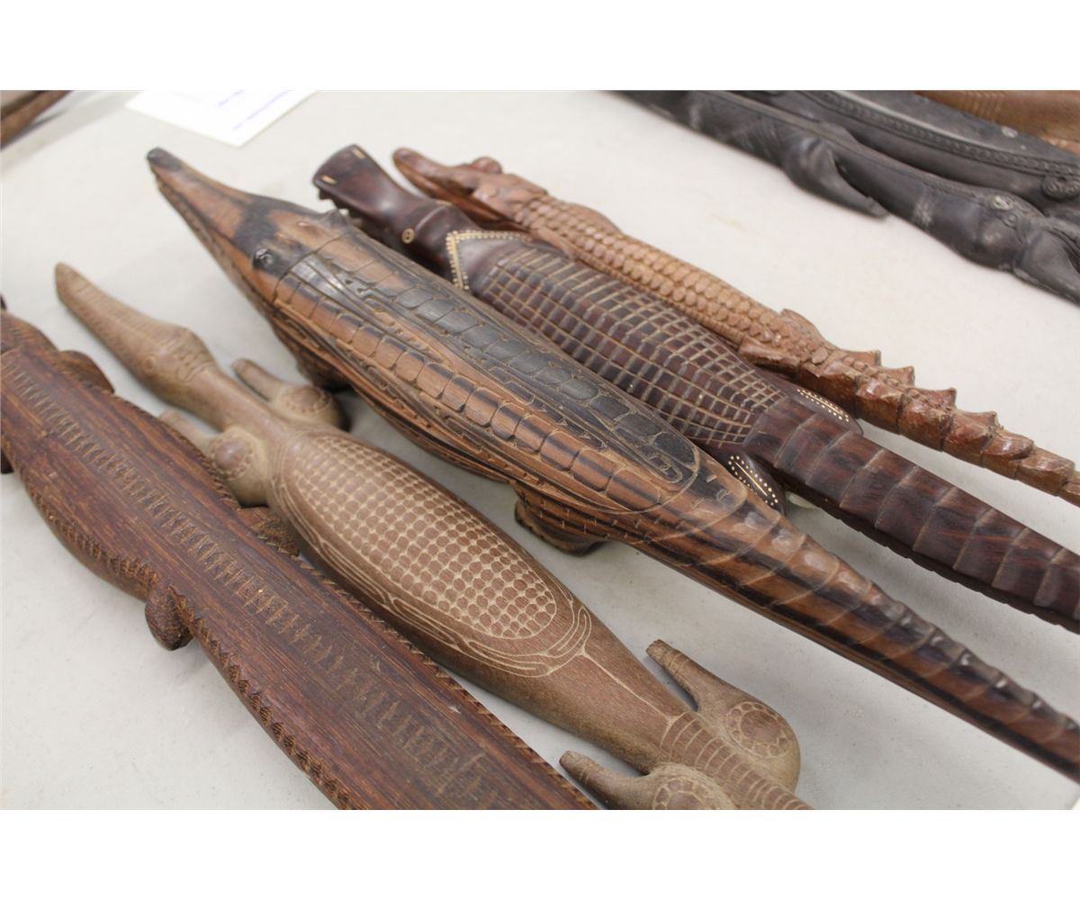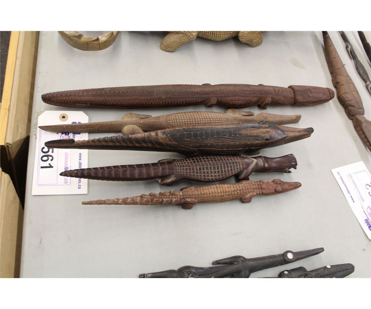 LOT OF 5 HAND CARVED WOODEN CROCODILES, ONE FROM NEPAL