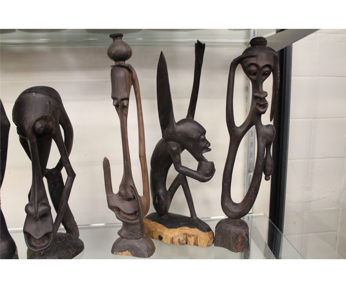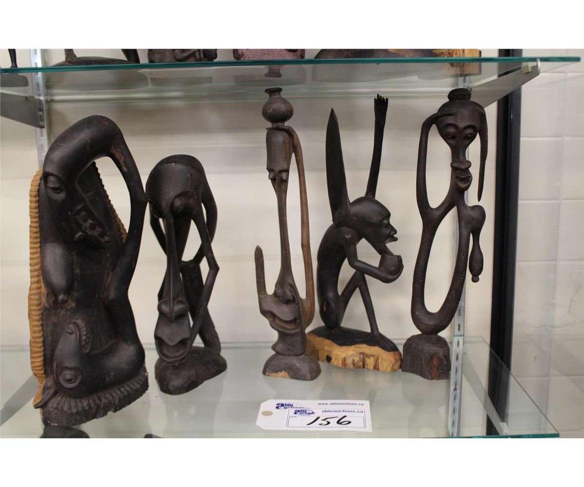 LOT OF 5 MAKONDE (TANZANIA) CARVED EBONY SCULPTURES 13"-16" HIGH