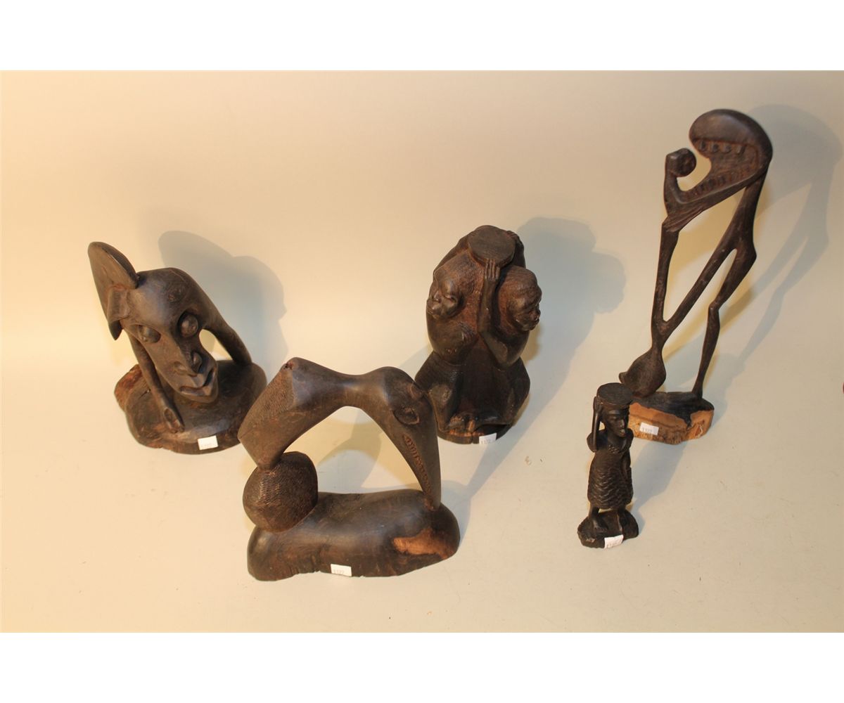 LOT OF 5 MAKONDE (TANZANIA) CARVED EBONY SCULPTURES