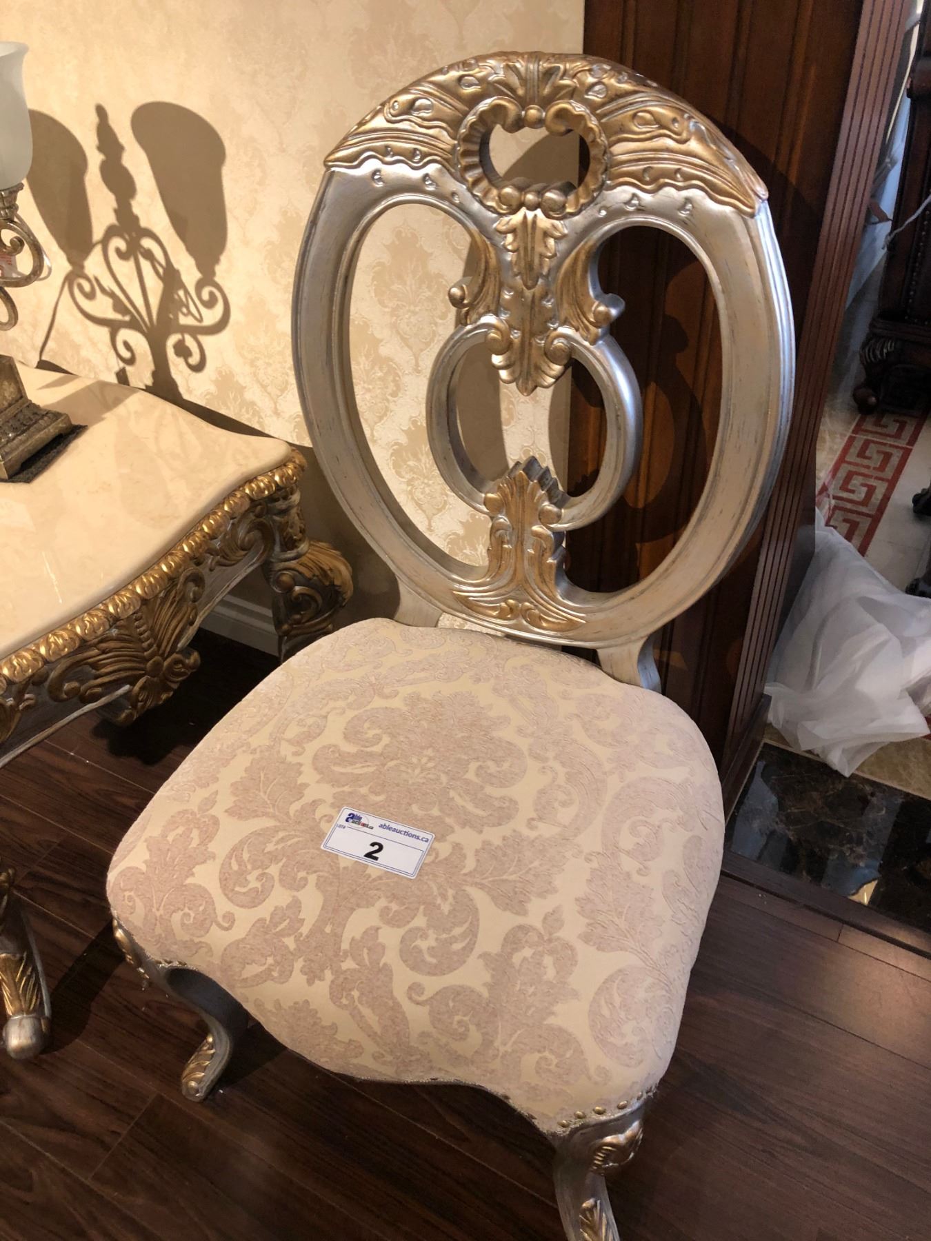 LOT OF 5 SILVER / GOLD FORMAL DINING CHAIRS (MATCH CHAIRS IN LOT 1) APPROX. RETAIL $7,250.00