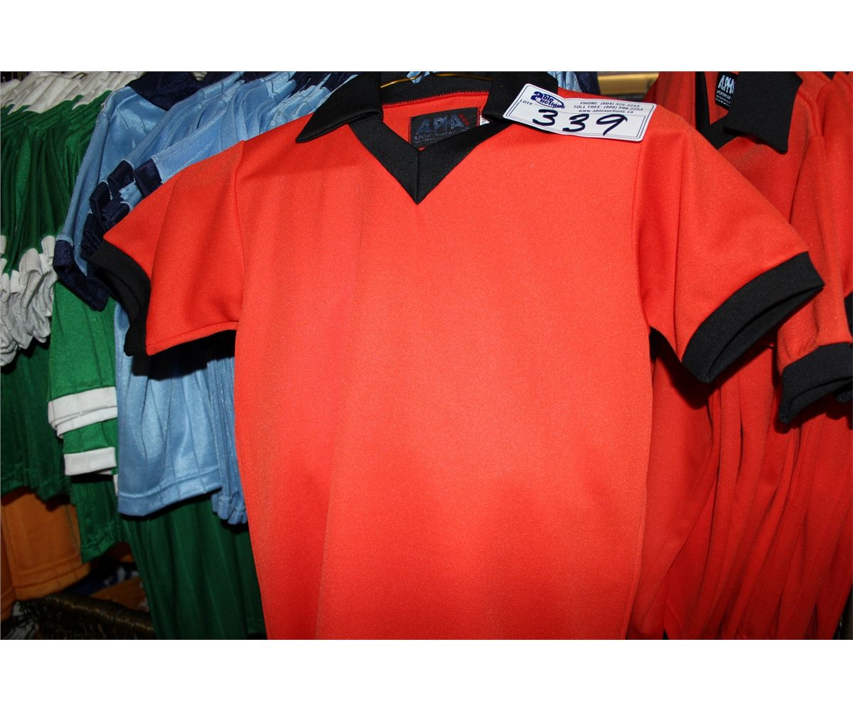 LOT OF 59 ORANGE/BLACK JUNIOR SOCCER JERSIES SOLD PER JERSEY, MUST TAKE ALL.