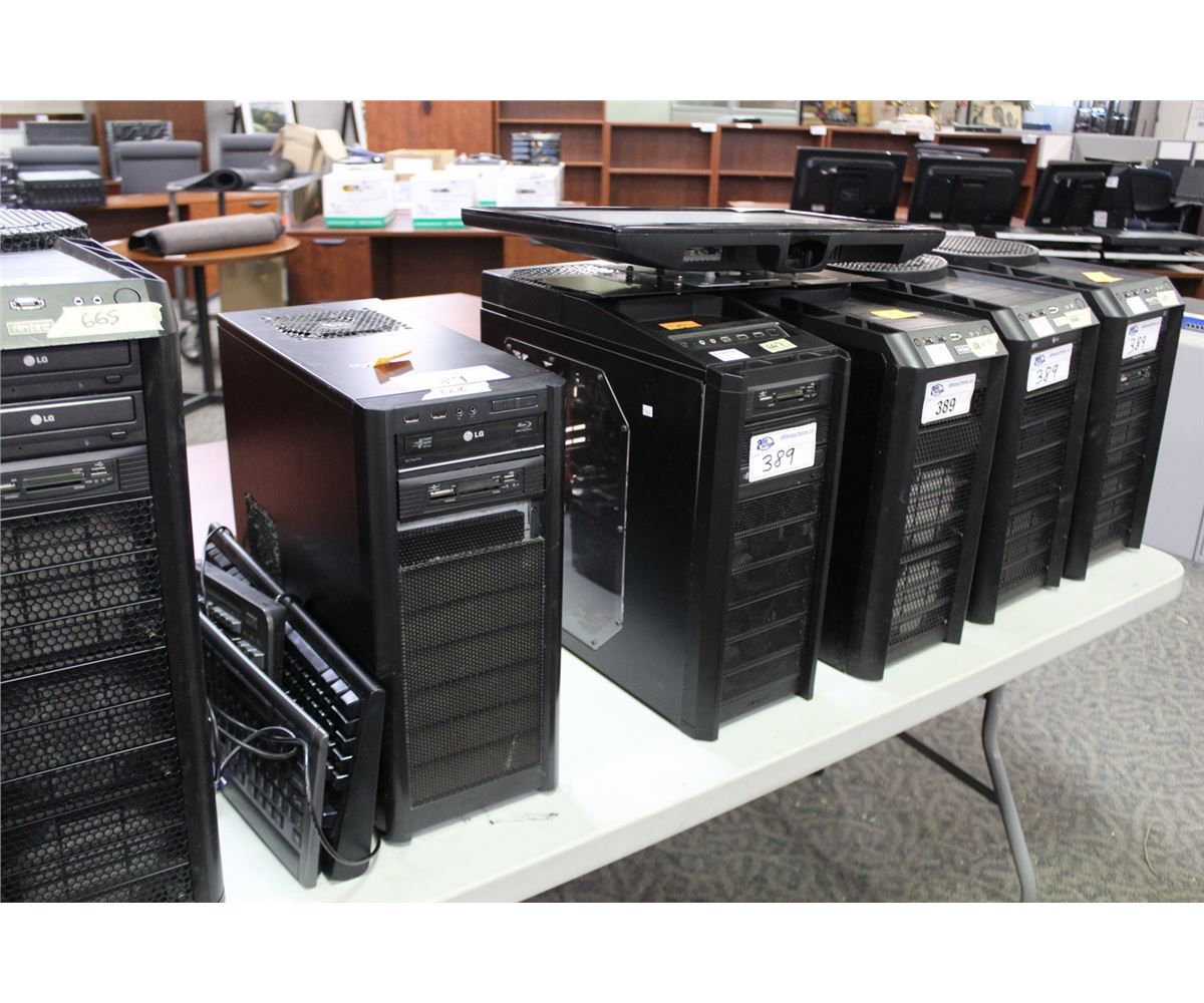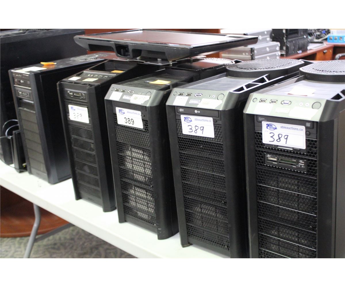LOT OF 6 DESKTOP COMPUTERS AND 23'' LG LCD MONITOR W/ RACK MOUNTING BRACKET-NO HARD DRIVE, NO HD