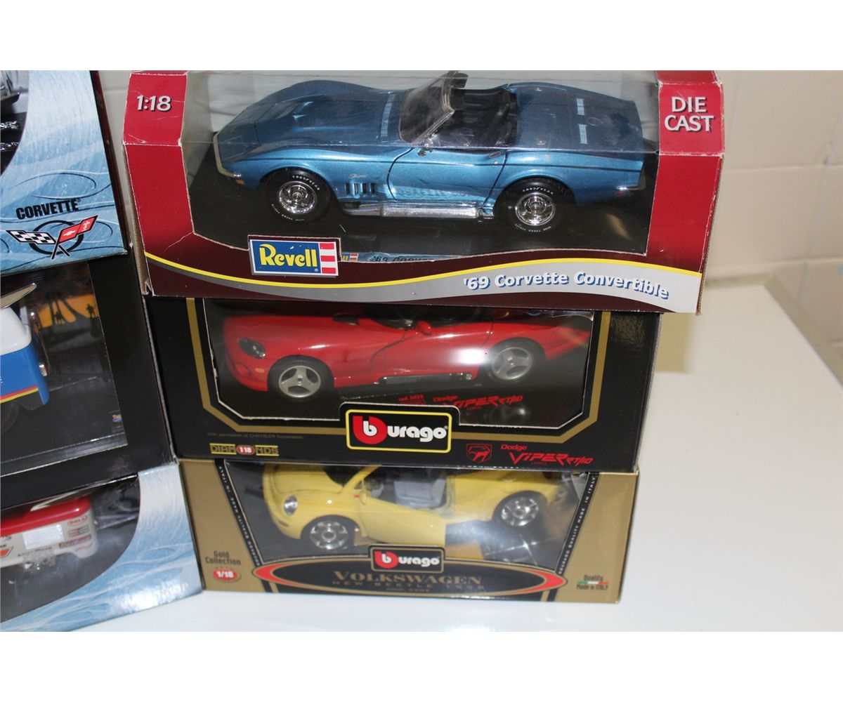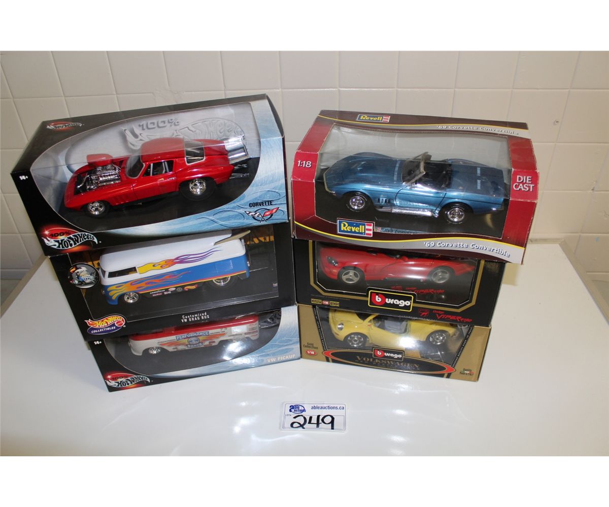 LOT OF 6 DIFFERENT 1:18 SCALE DIE CAST MODELS NEW IN BOX INCLUDES HOTWHEELS, REVELL, BURAGO