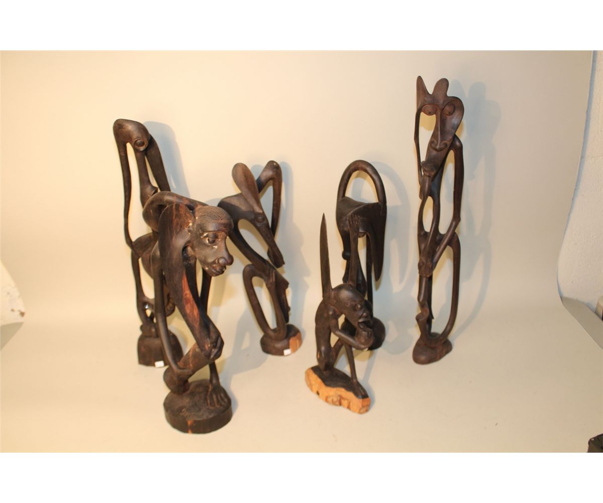 LOT OF 6 MAKONDE (TANZANIA) CARVED EBONY SCULPTURES