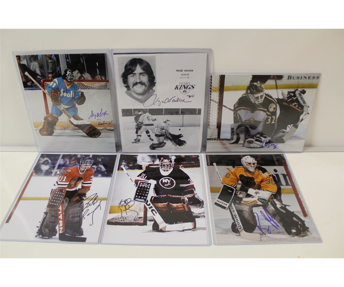 LOT OF 6 SIGNED 8"X 10" GOALIE PHOTOGRAPHS- KELLY HRUDEY, BILL RANFORD, NICKLAS BACKSTROM AND MORE, SOME WITH COA