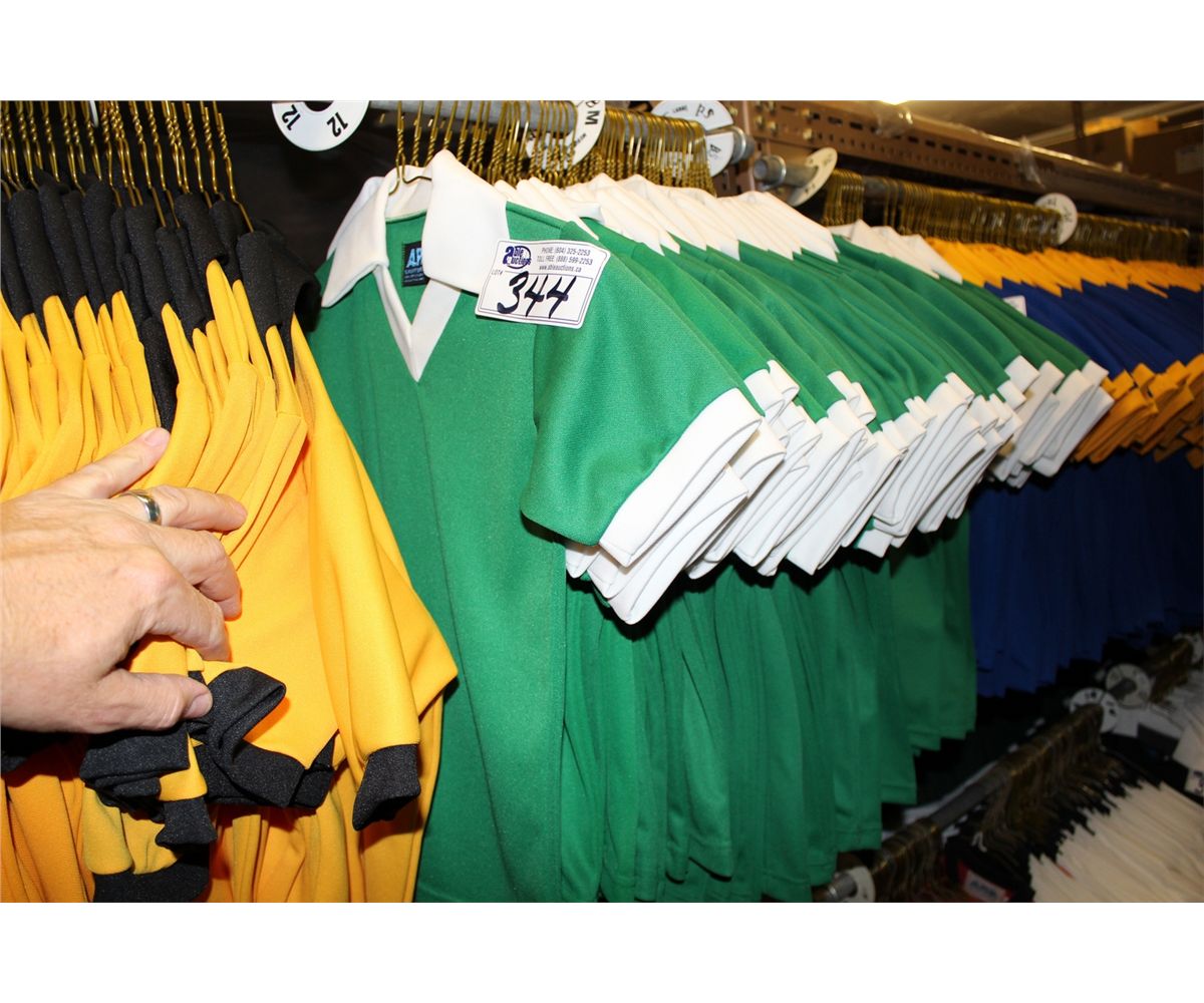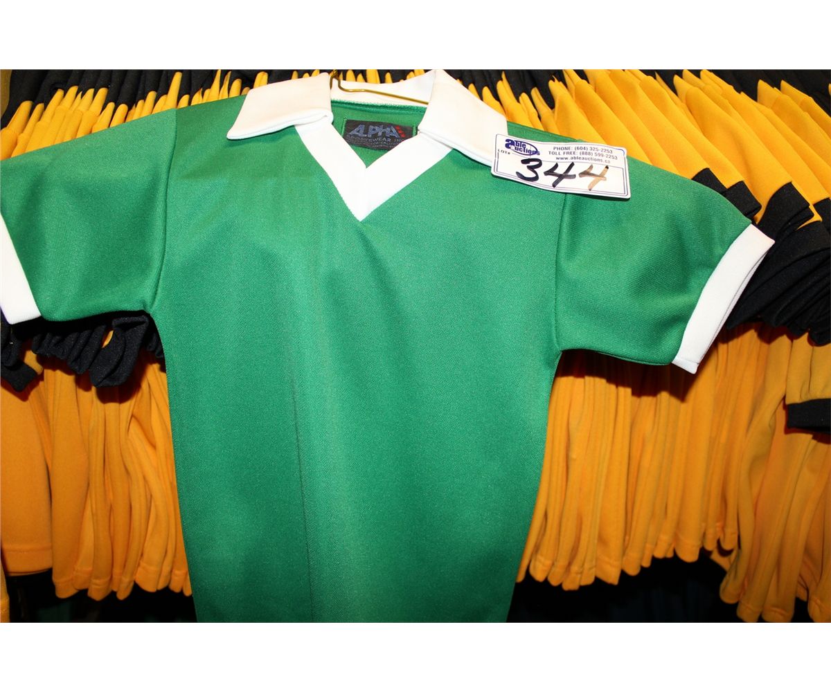 LOT OF 61 GREEN/WHITE JUNIOR SOCCER JERSIES SOLD PER JERSEY, MUST TAKE ALL.