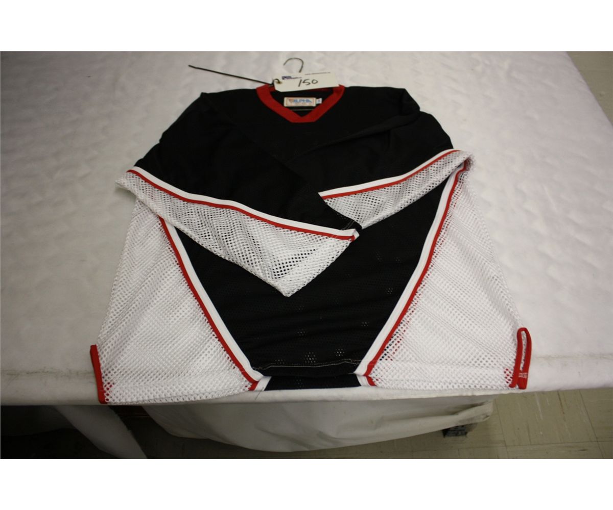 LOT OF 73 BLACK/WHITE ROLLER HOCKEY JERSIES SOLD PER JERSEY, MUST TAKE ALL