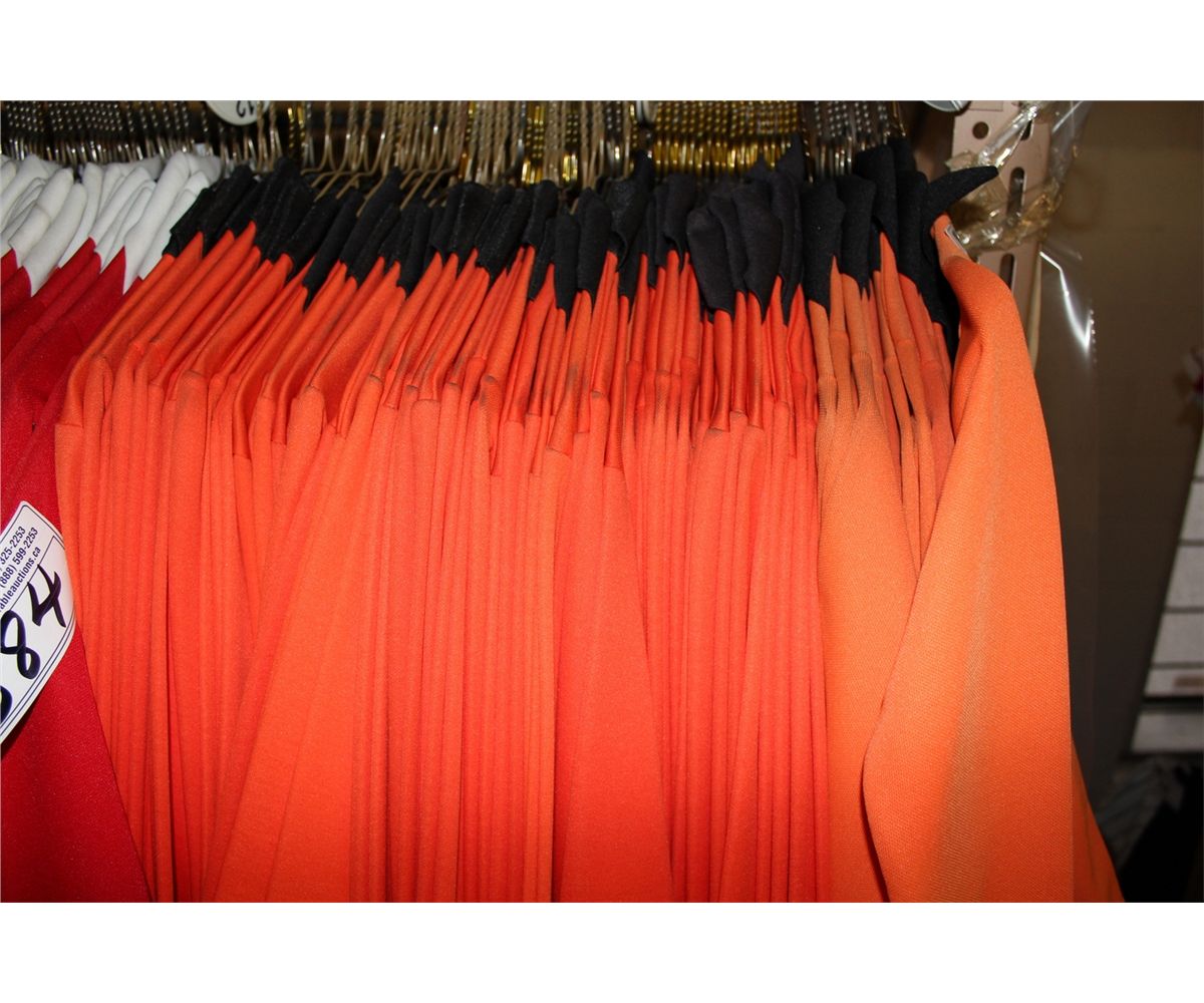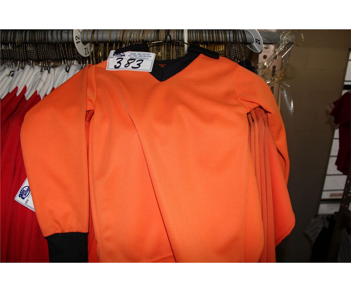 LOT OF 74 ORANGE/BLACK JUNIOR SOCCER JERSIES SOLD PER JERSEY, MUST TAKE ALL.