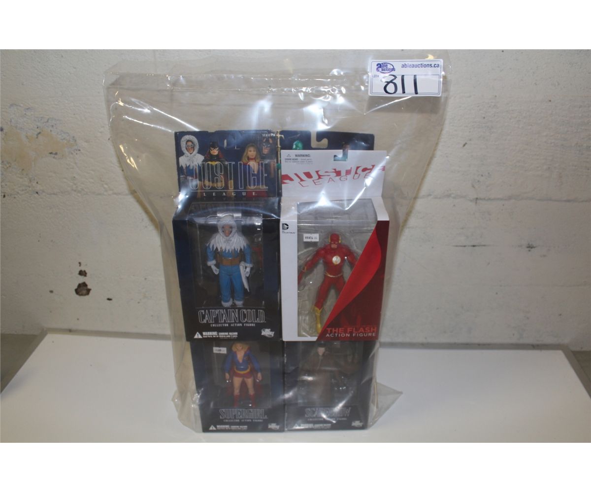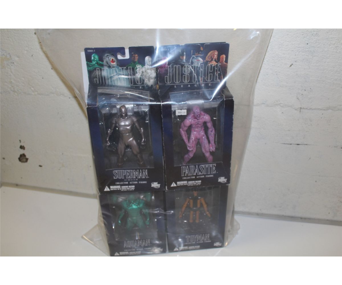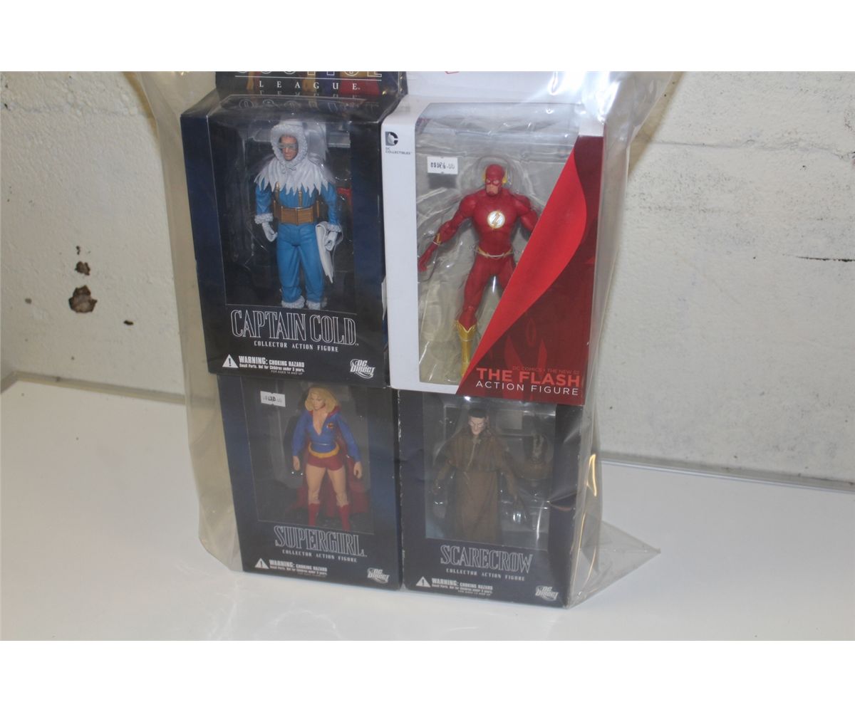 LOT OF 8 ASSORTED DC COLLECTOR ACTION FIGRUES, NEW IN BOX. INCLUDES, THE FLASH, SCARECROW, SUPERGIRL, SUPERMAN, AQUAMAN, ETC.
