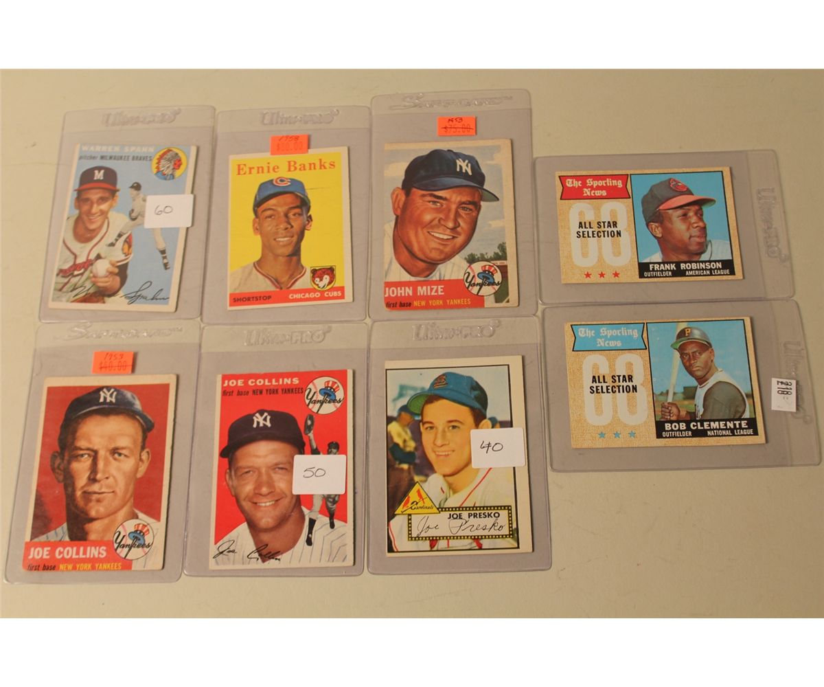 LOT OF 8 BASEBALL CARDS INCL. BOB CLEMENTE, FRANK ROBINSON, ERNIE BANKS AND MORE!