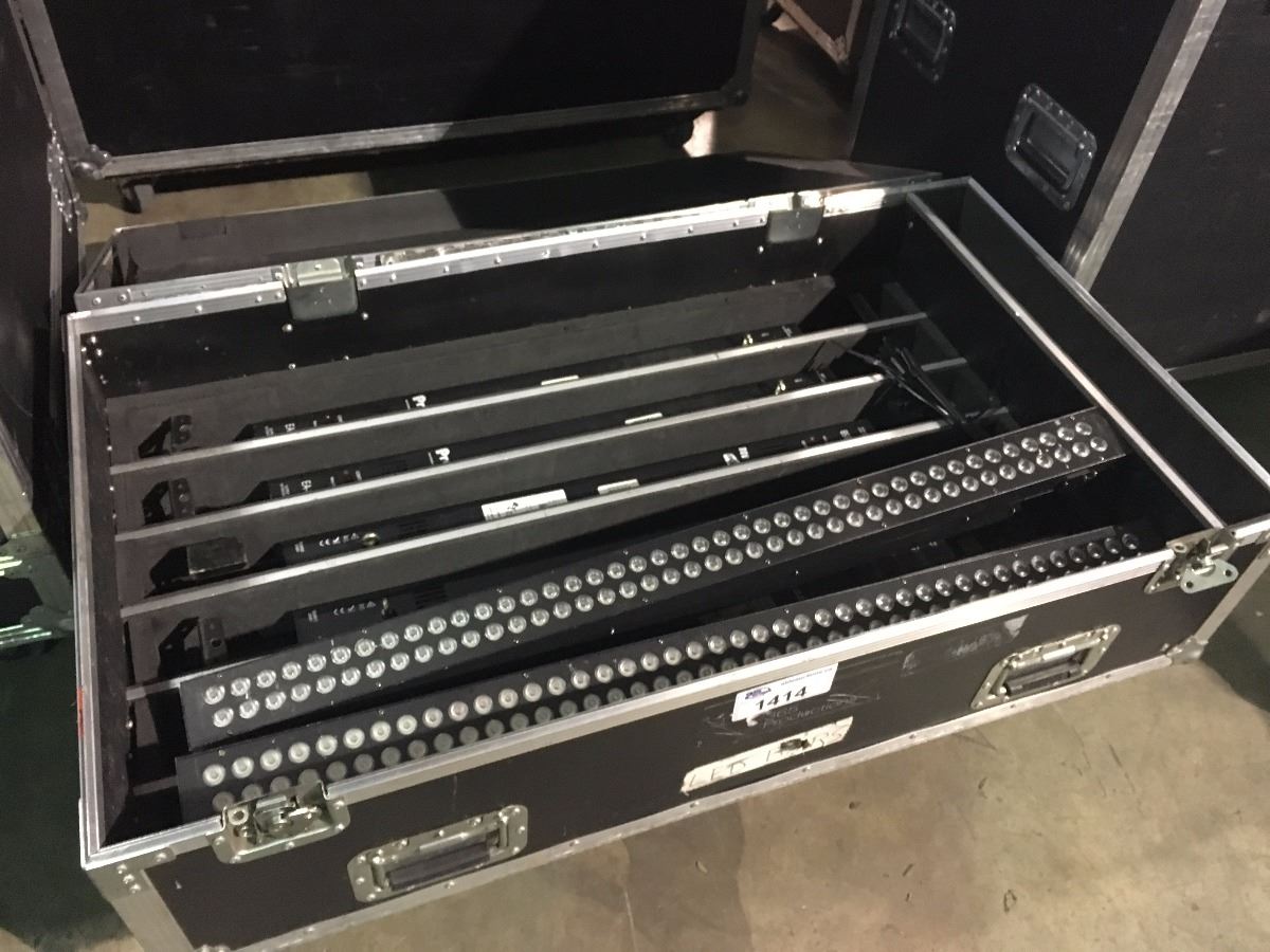 LOT OF 8 - EA-8085B LED LIGHT BARS IN CUSTOM ROAD CASE: DAMAGED HINGE