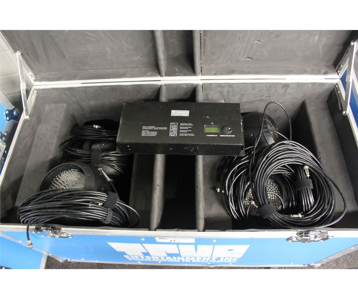 LOT OF 8 LED STAGE LIGHTS WITH CONTROLLER & DINO CASE