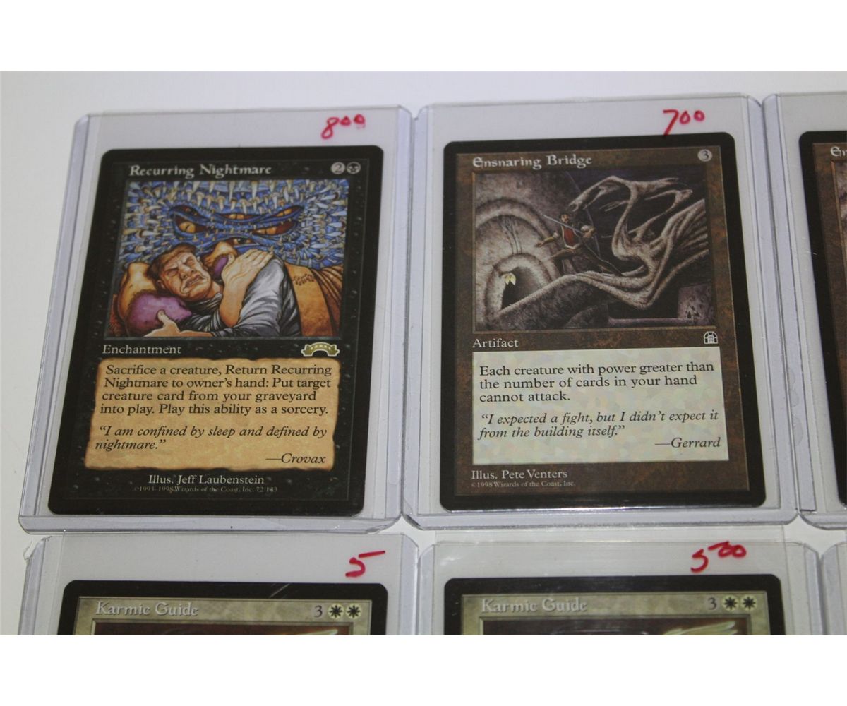 LOT OF 8 MTG RARE CARDS IN HIGH GRADE- CHAIN LIGHTNING, RECURRING NIGHTMARE, ENSNARING BRIDGE X 2, KARMIC GUIDE X 4