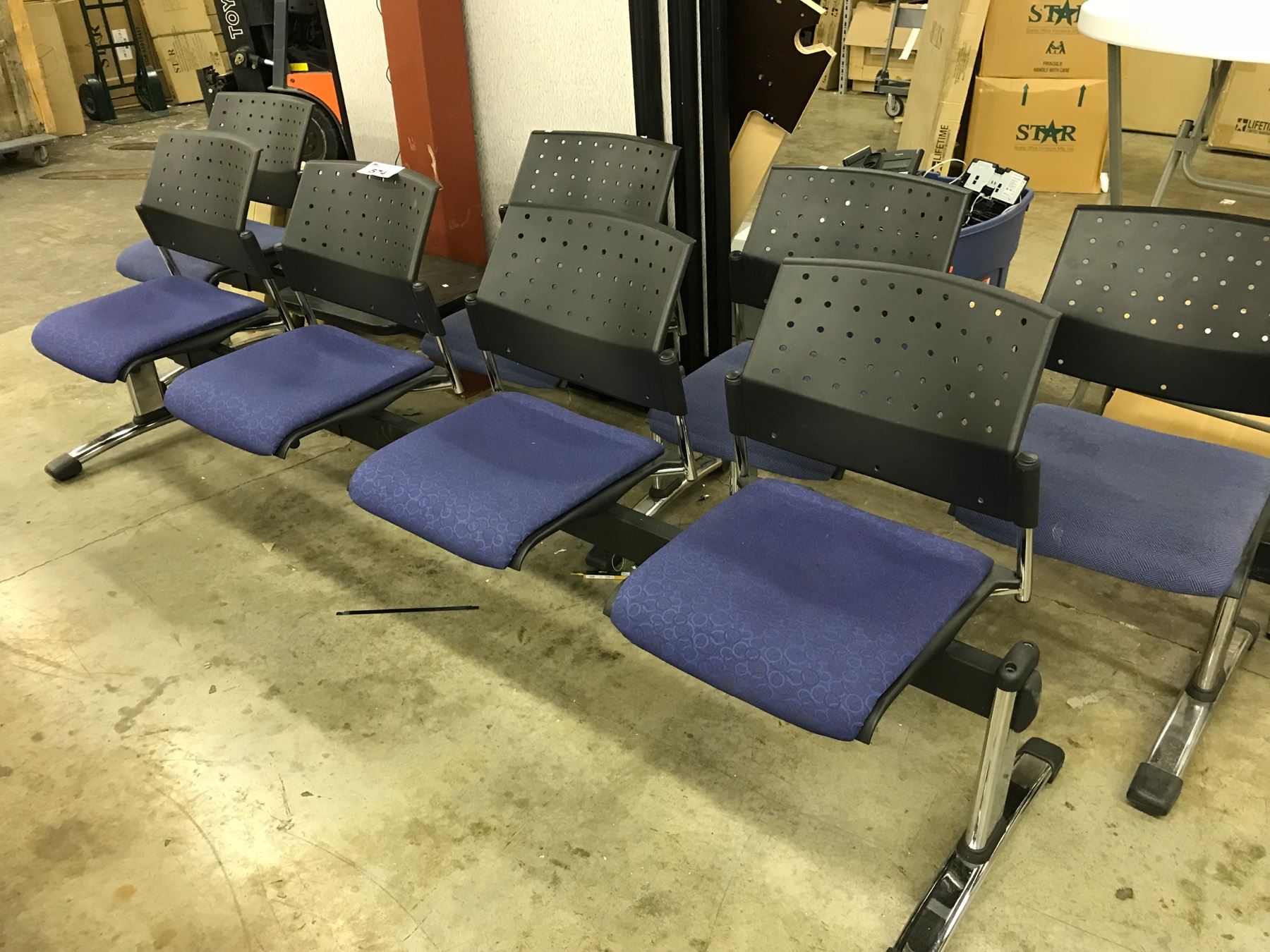 LOT OF 8 SEATS OF COMMERCIAL RECEPTION SEATING, WITH 24'' SIDE TABLE