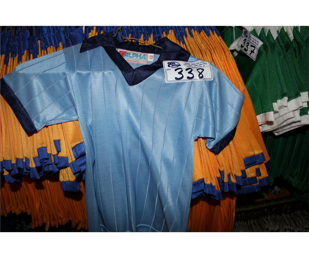 LOT OF 80 BLUE/DARK BLUE JUNIOR SOCCER JERSIES SOLD PER JERSEY, MUST TAKE ALL.