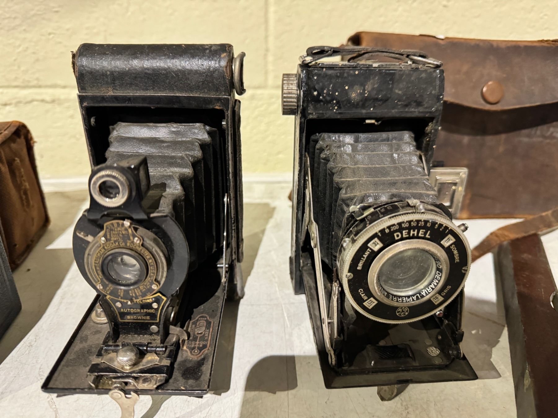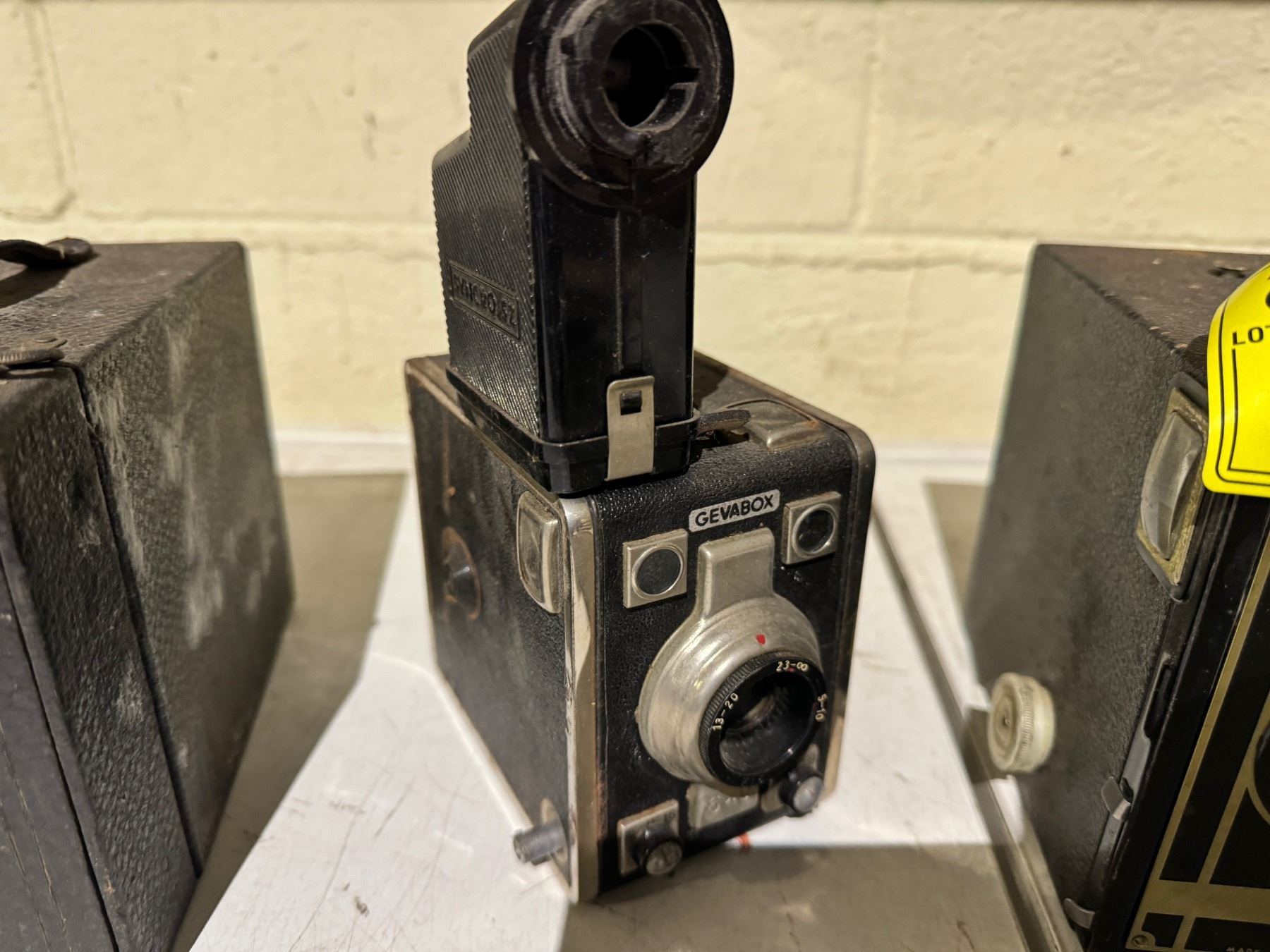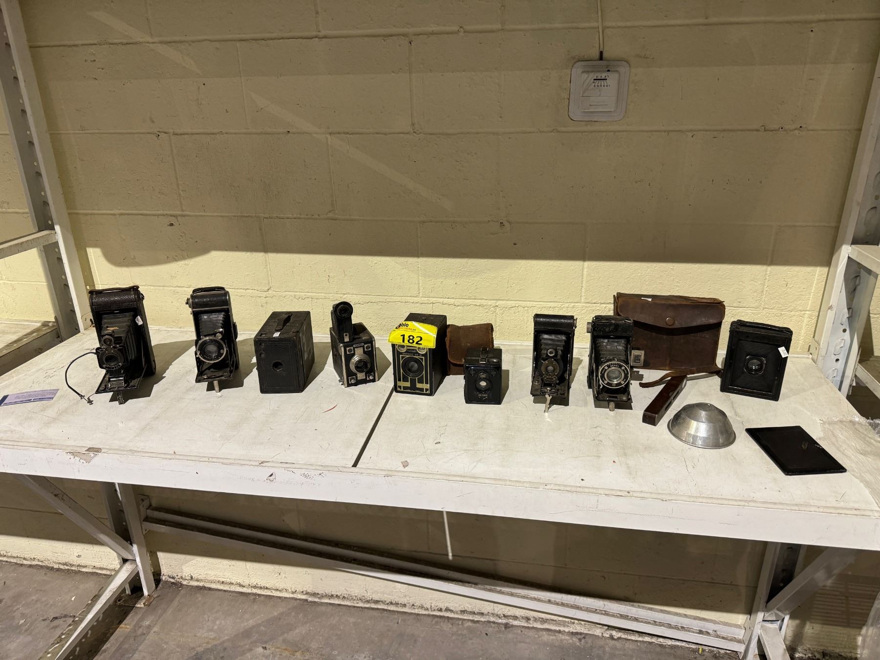 LOT OF 9 ANTIQUE CAMERAS AND A LEVEL