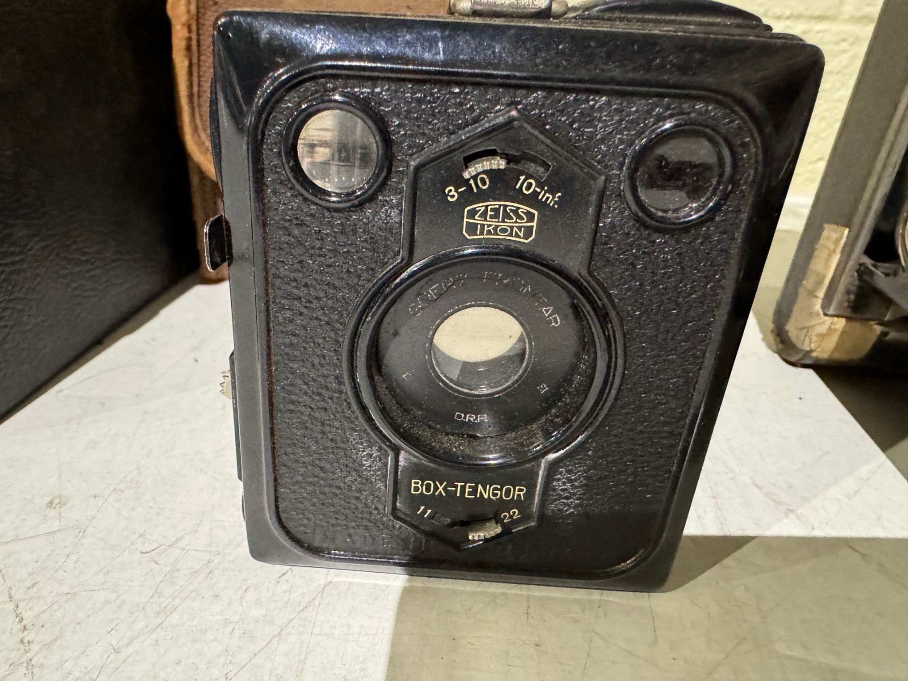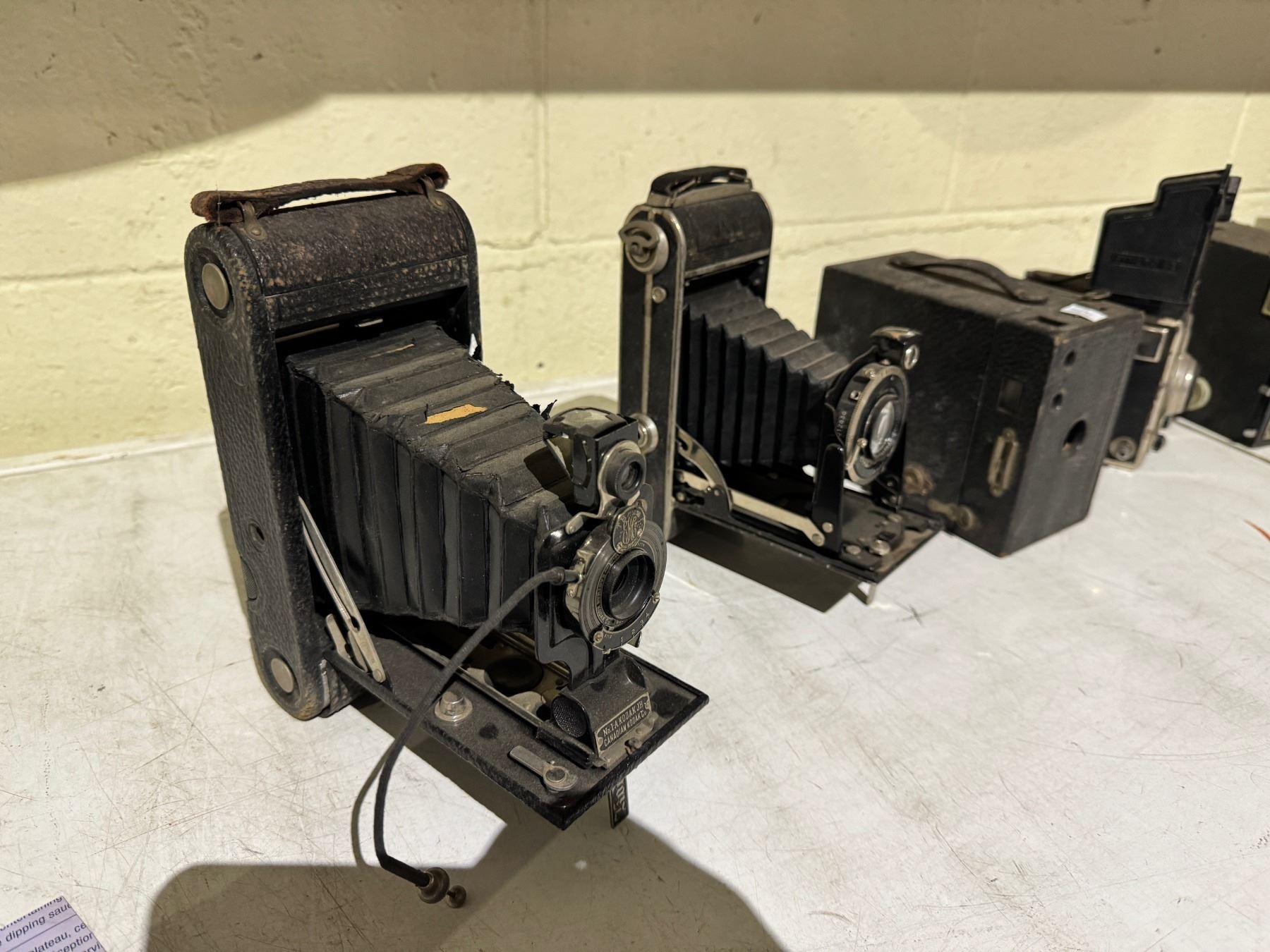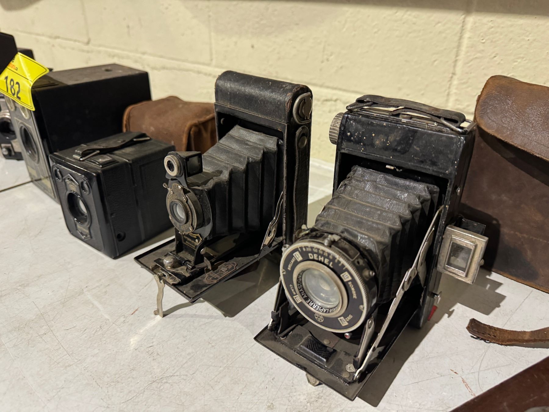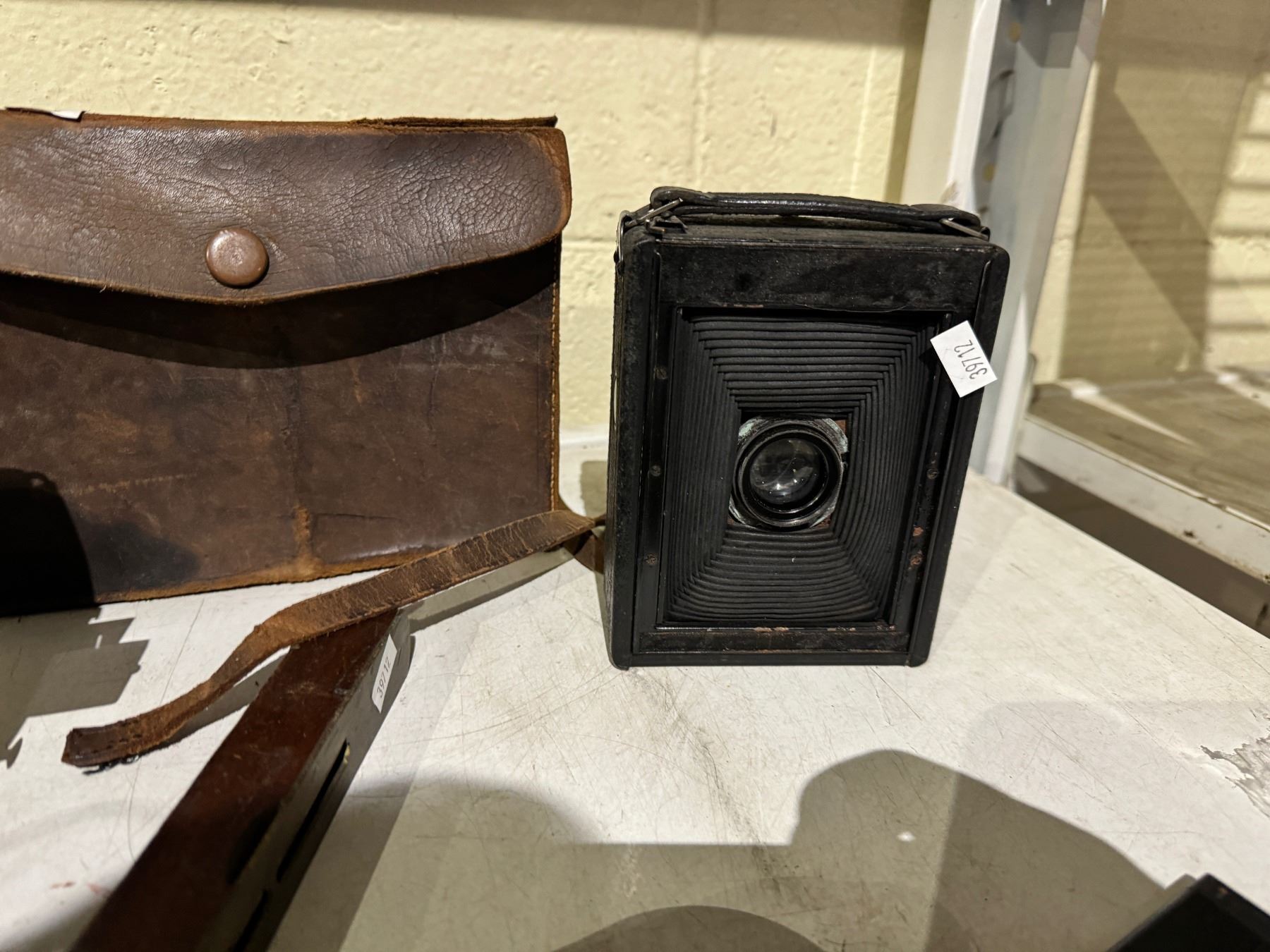 LOT OF 9 ANTIQUE CAMERAS AND A LEVEL