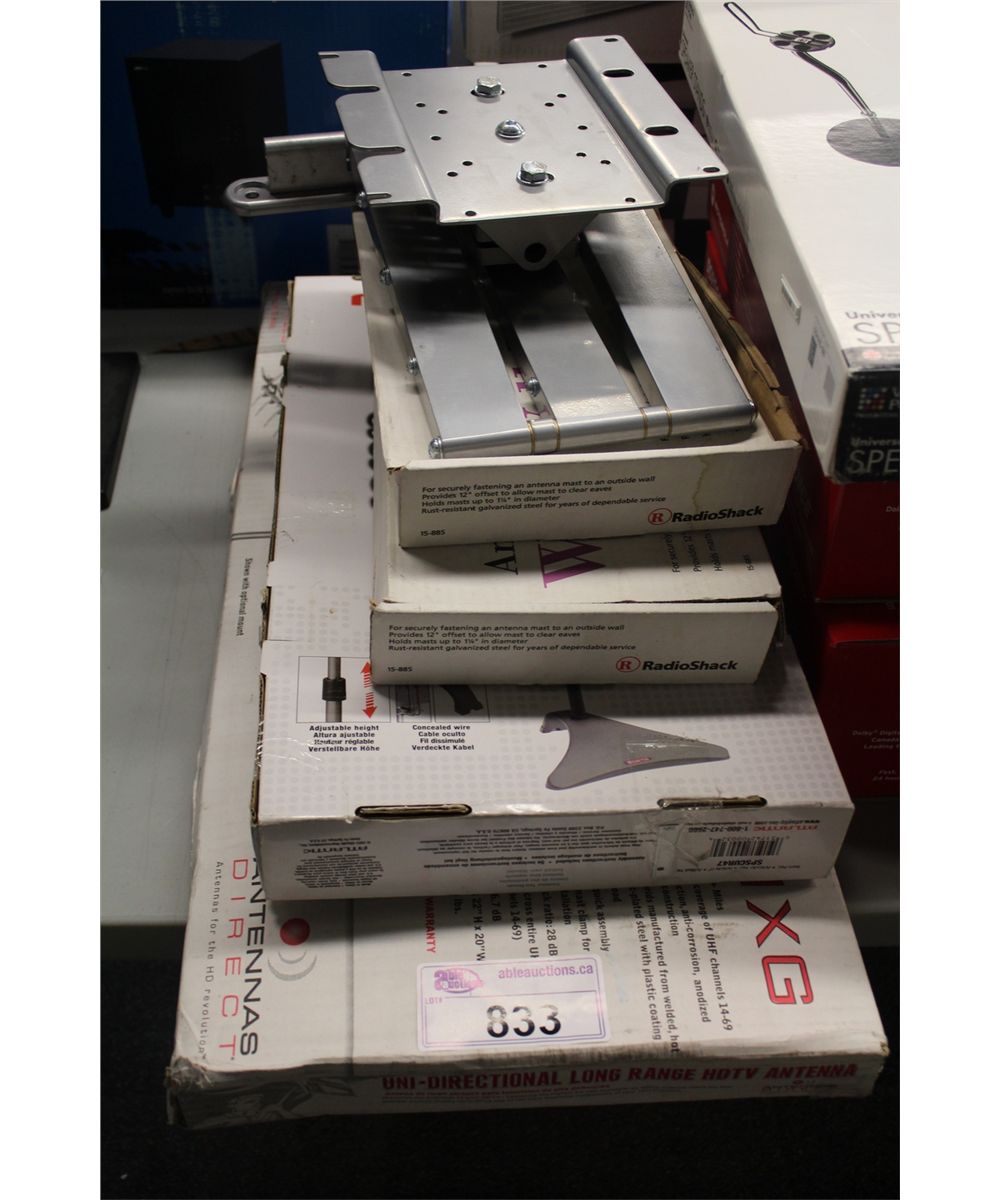 LOT OF ANTENNAS AND TV WALL MOUNT