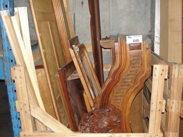 LOT OF ANTIQUE FURNITURE PARTS; MIRRORED FRONT WARDROBE, TABLE LEAVES, ETC