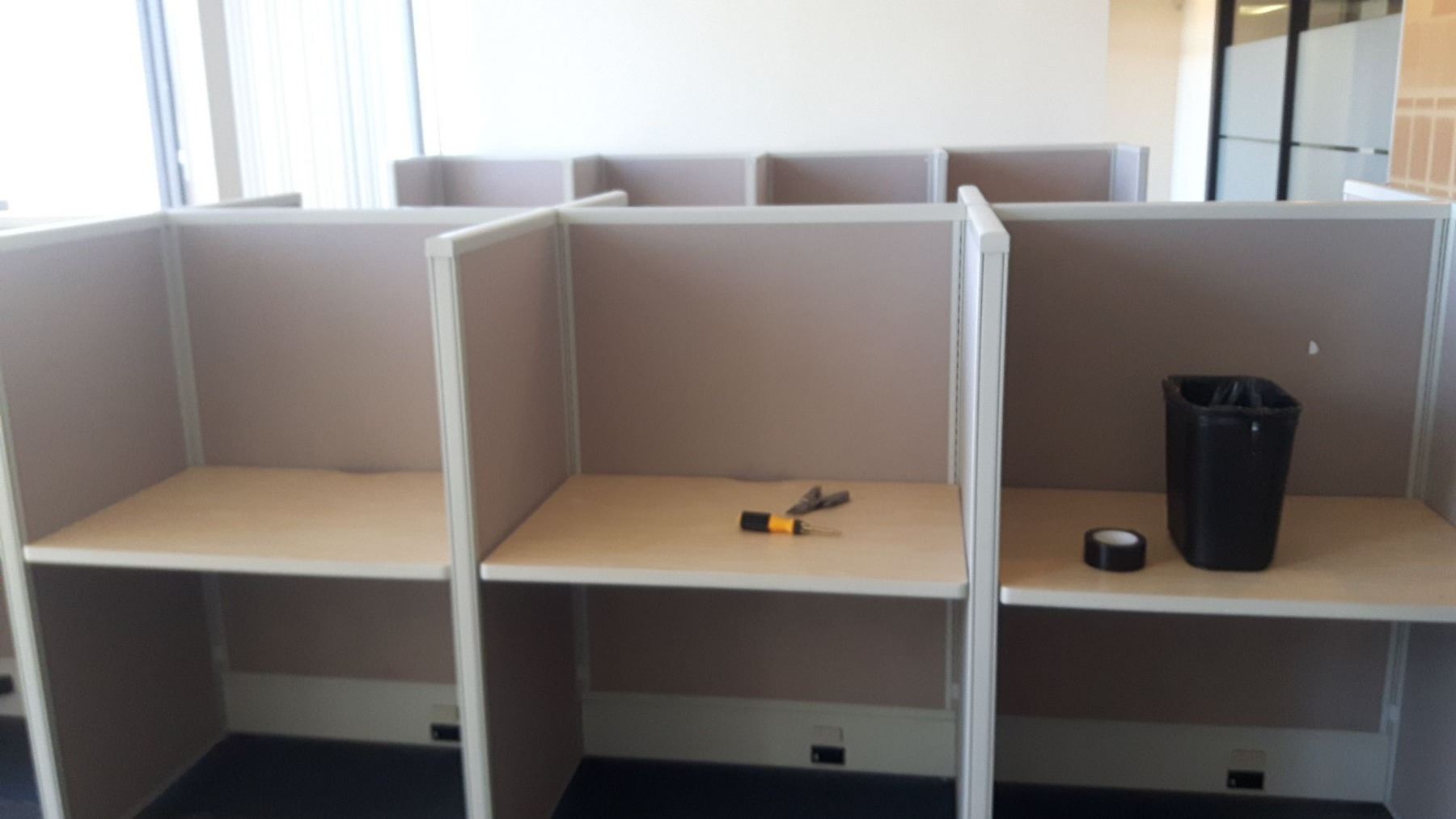 LOT OF APPROX. 50 SEATS OF MAPLE AND GREY CALL CENTER WORKSTATIONS