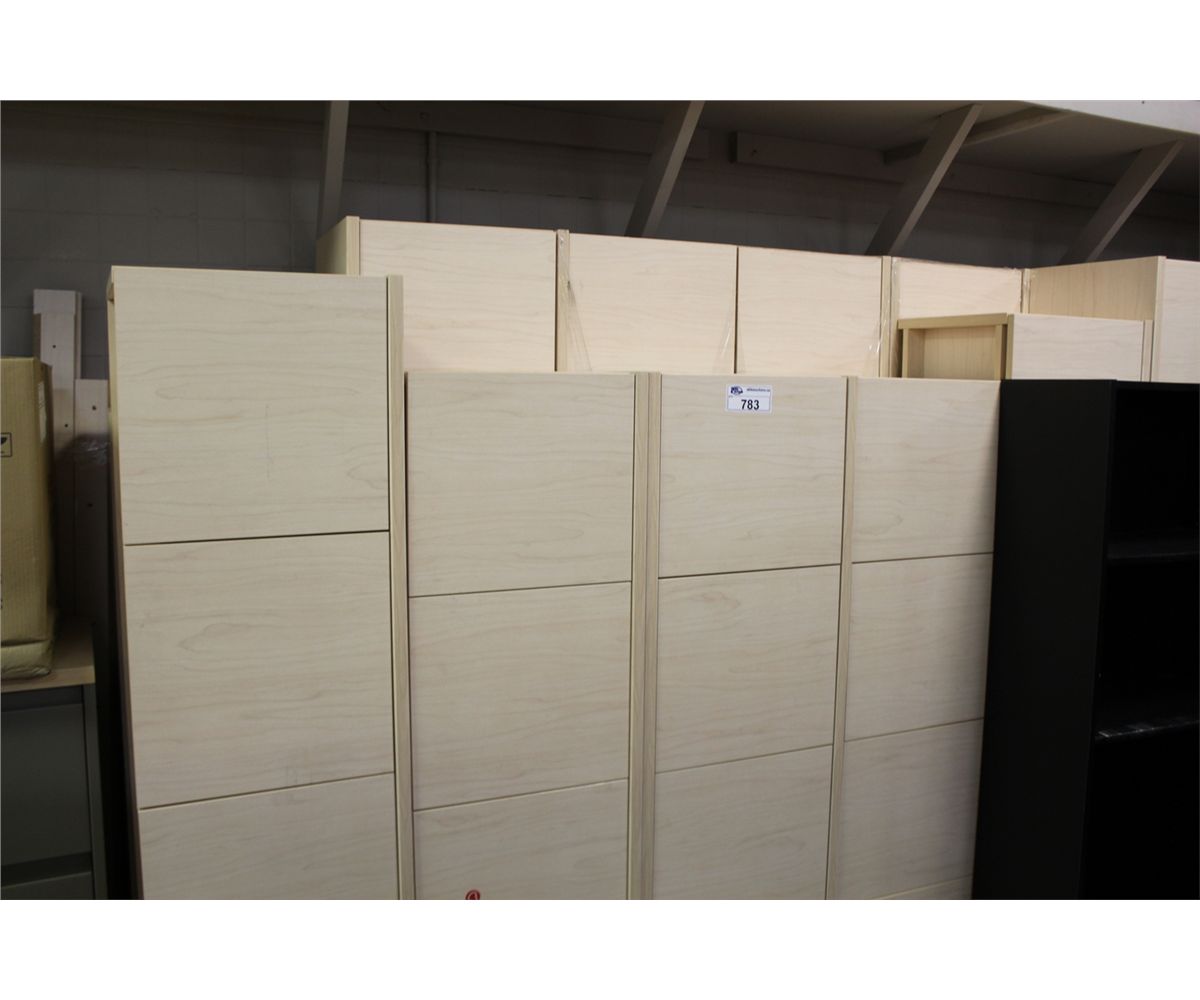 LOT OF APPROXIMATELY 15 MAPLE HANGING OVERHEAD STORAGE CABINETS