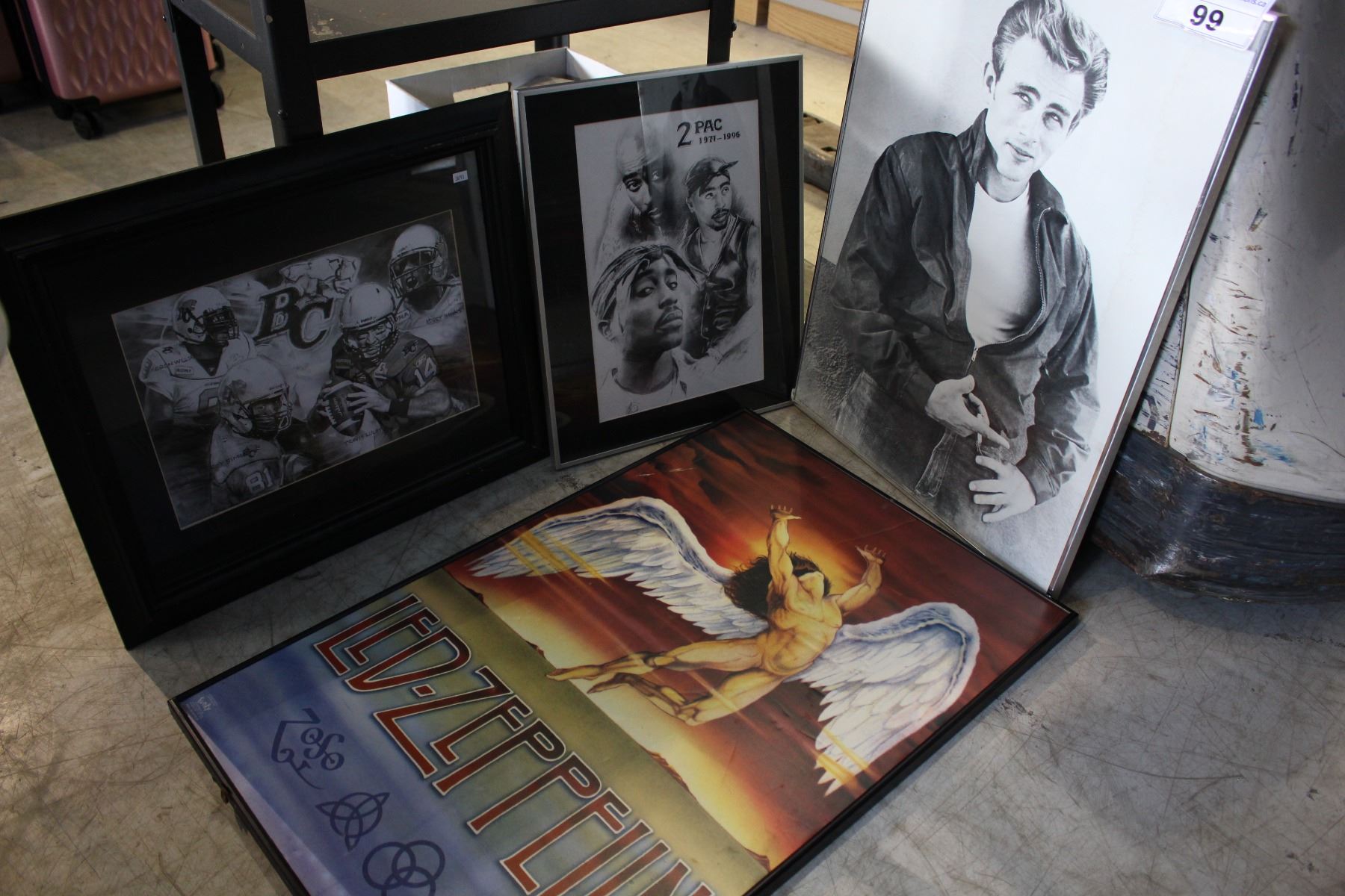 LOT OF ARTWORK (LED ZEPPELIN, 2 PAC, JAMES DEAN AND FOOTBALL)