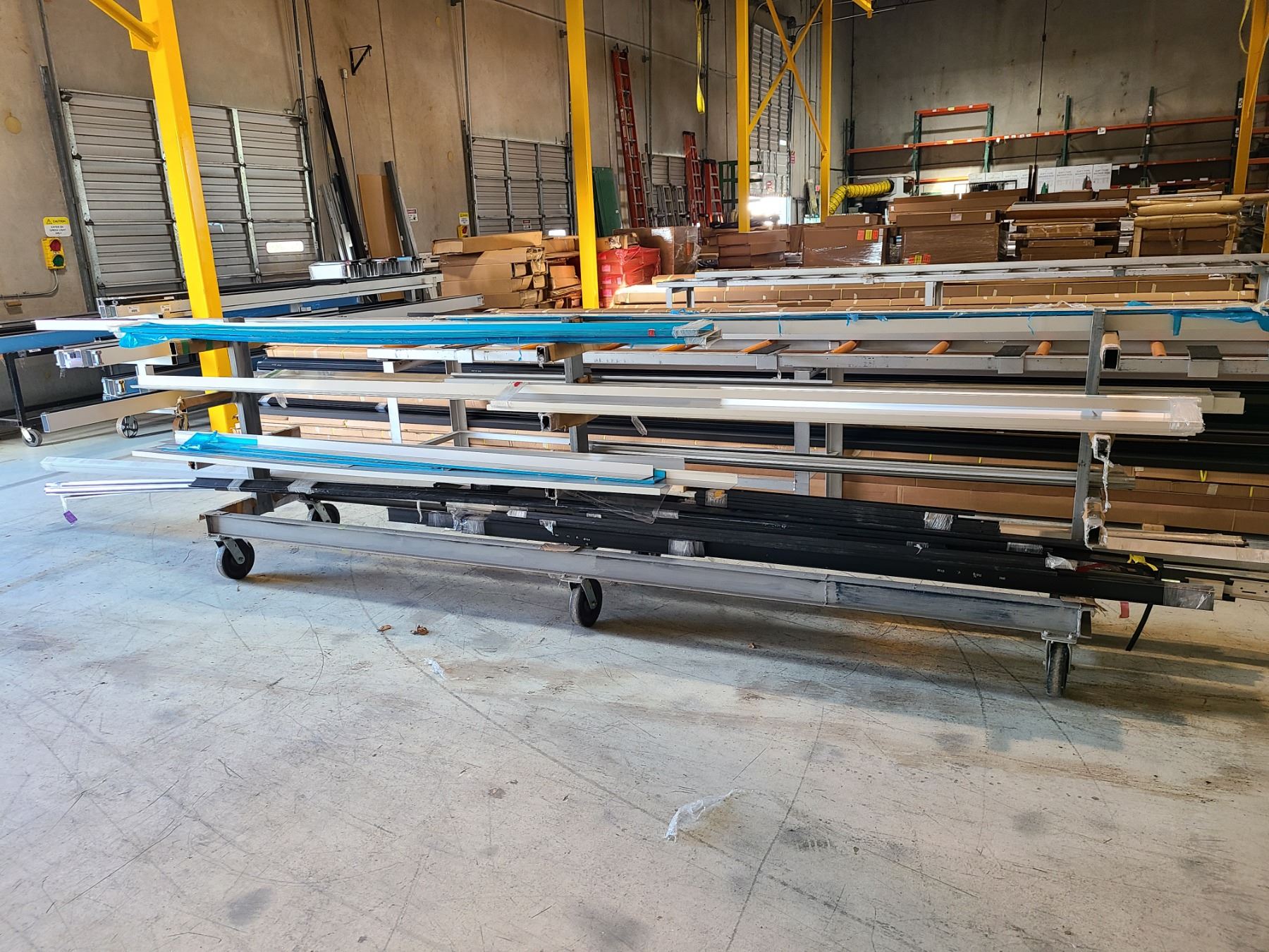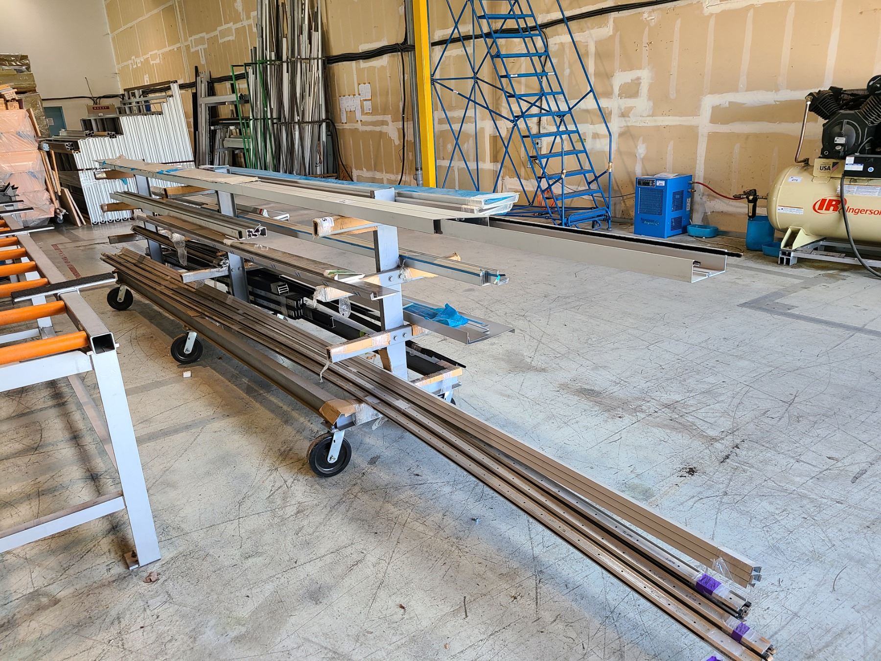 LOT OF ASSORTED ALUMINUM CONTENTS ON MATERIAL RACK