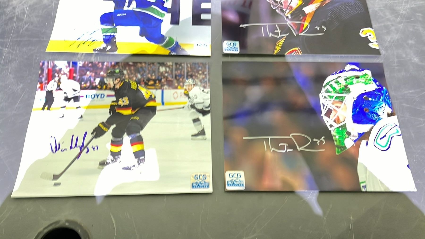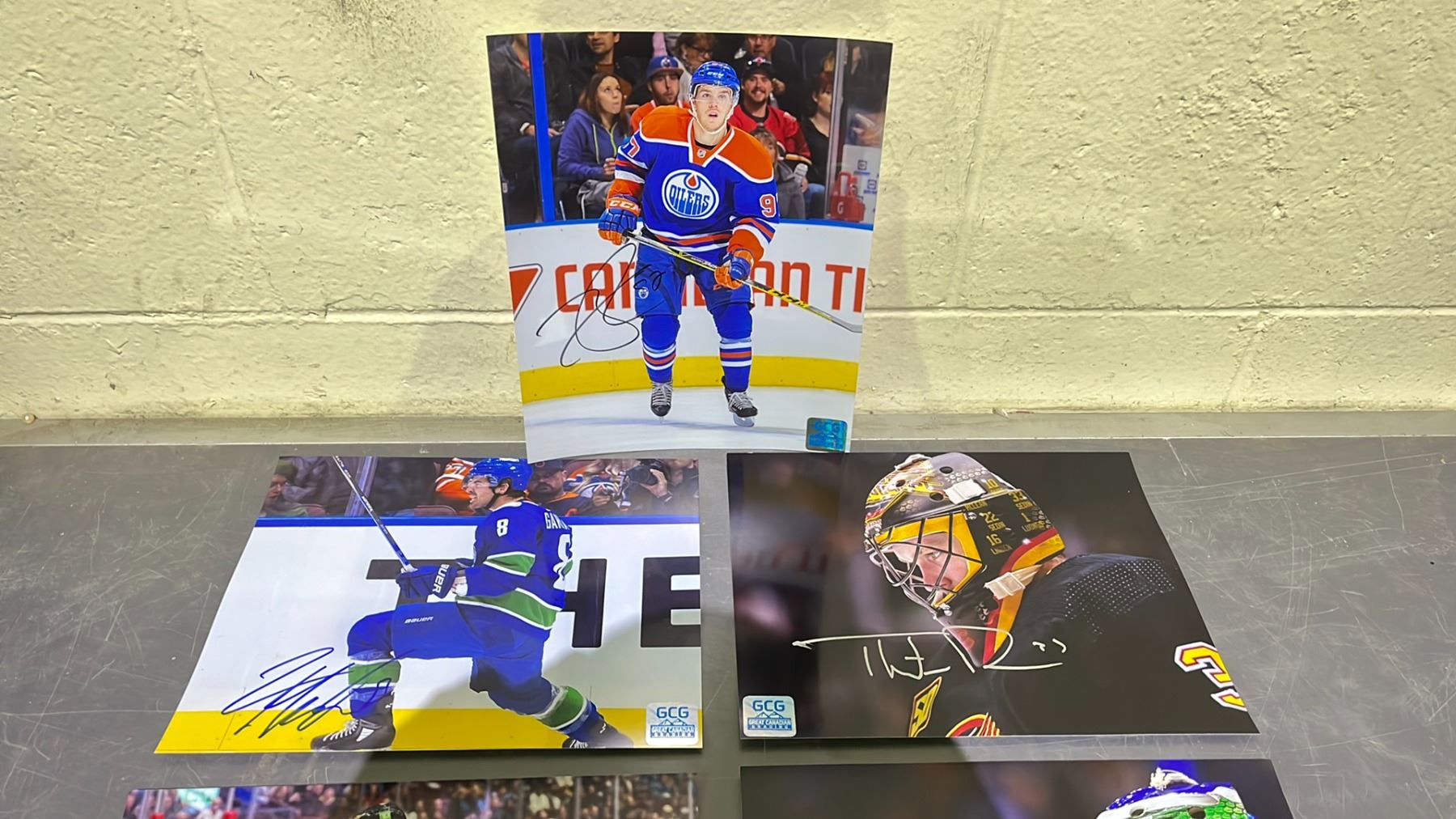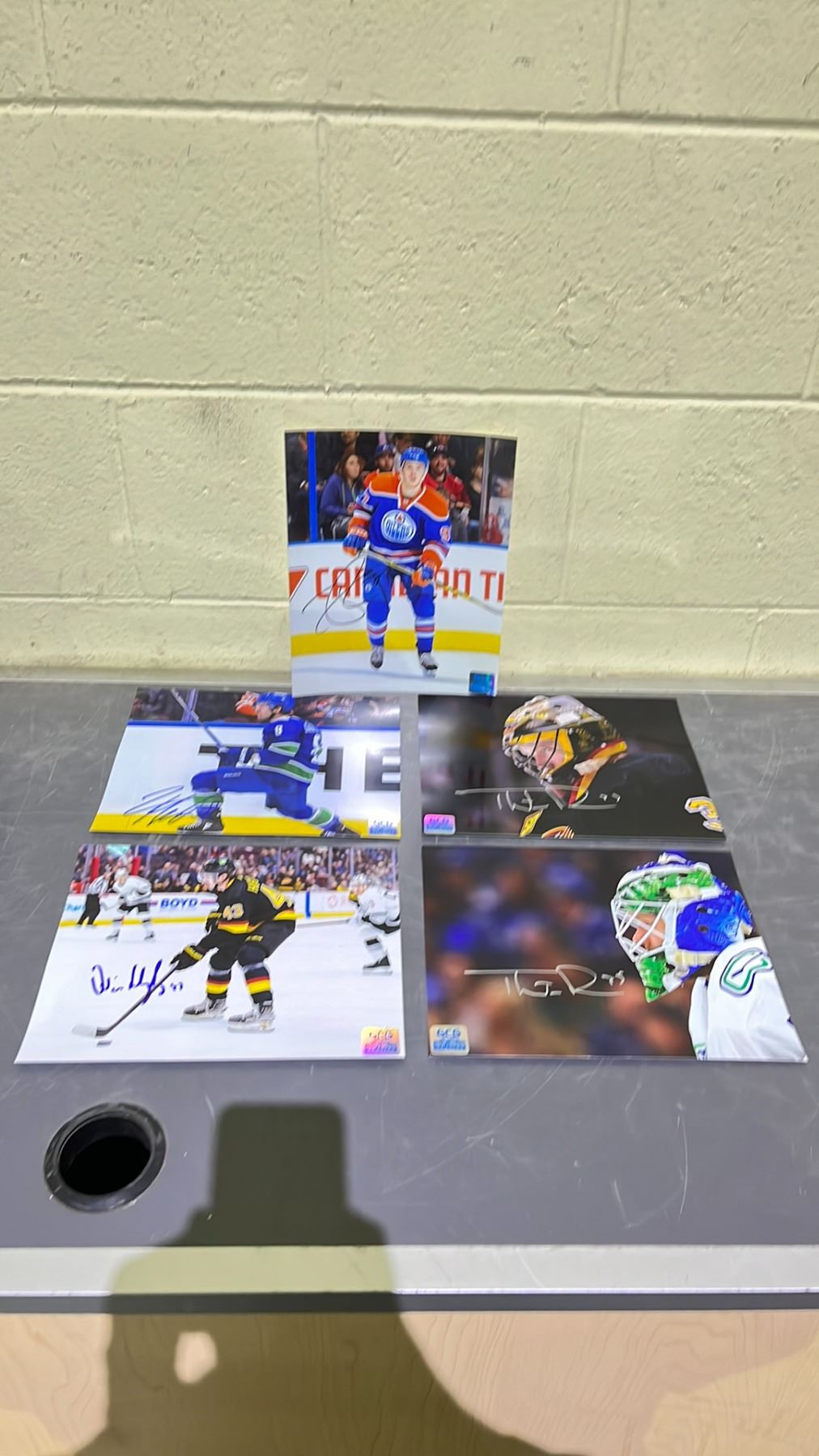 LOT OF ASSORTED AUTOGRAPHED HOCKEY PHOTOS INCLUDING; THATCHER DEMKO, CONNOR MCDAVID, QUINN HUGHES & CONOR GARLAND