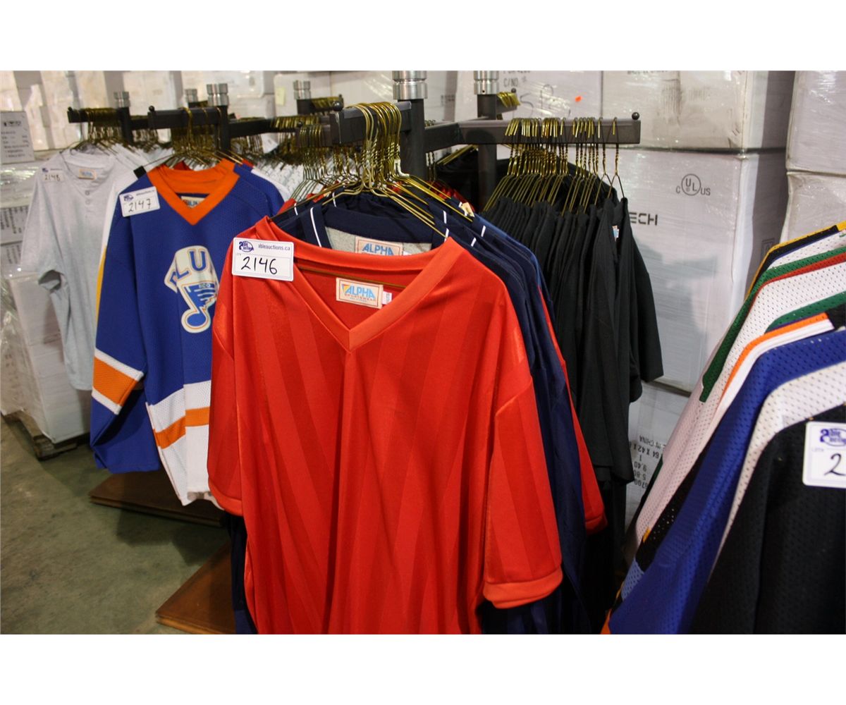 LOT OF ASSORTED BASEBALL TEAM JERSEYS (RACK NOT INCLUDED)