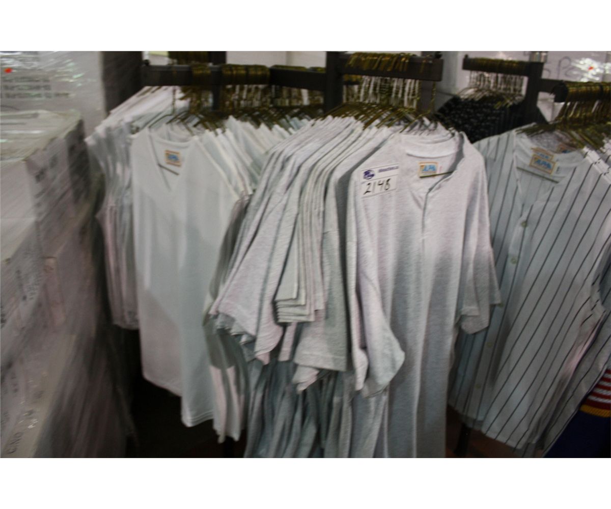 LOT OF ASSORTED BASEBALL TEAM JERSEYS (RACK NOT INCLUDED)