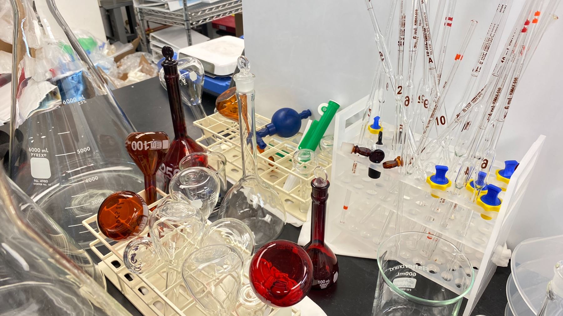 LOT OF ASSORTED BEAKERS AND GLASSWARE
