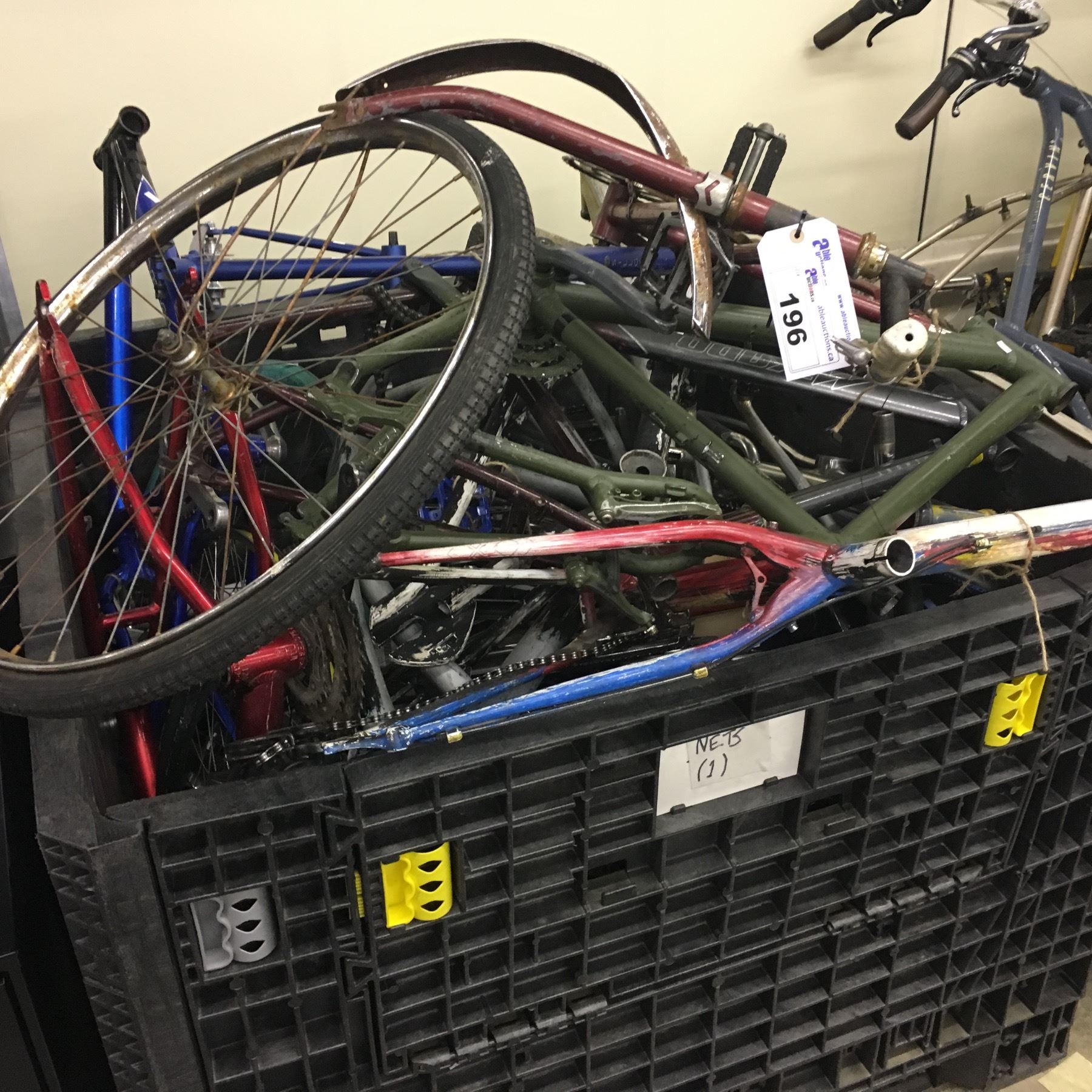 LOT OF ASSORTED BIKE FRAMES AND PARTS, BIN NOT INCLUDED