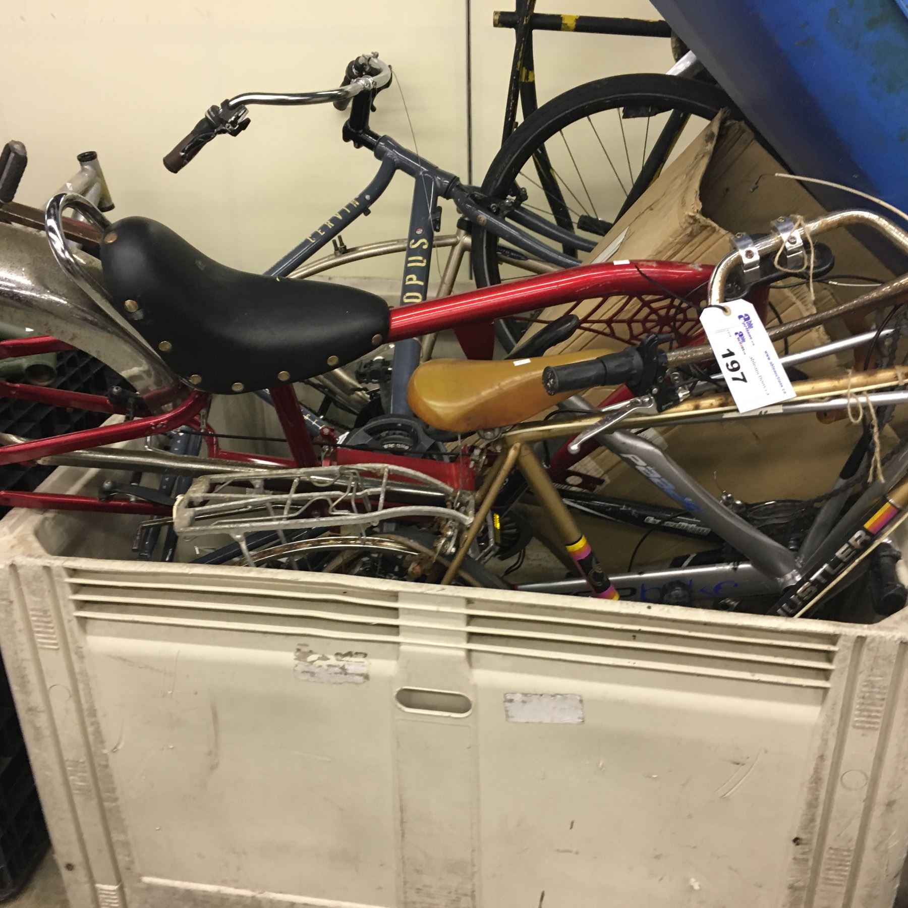 LOT OF ASSORTED BIKE FRAMES AND PARTS, BIN NOT INCLUDED