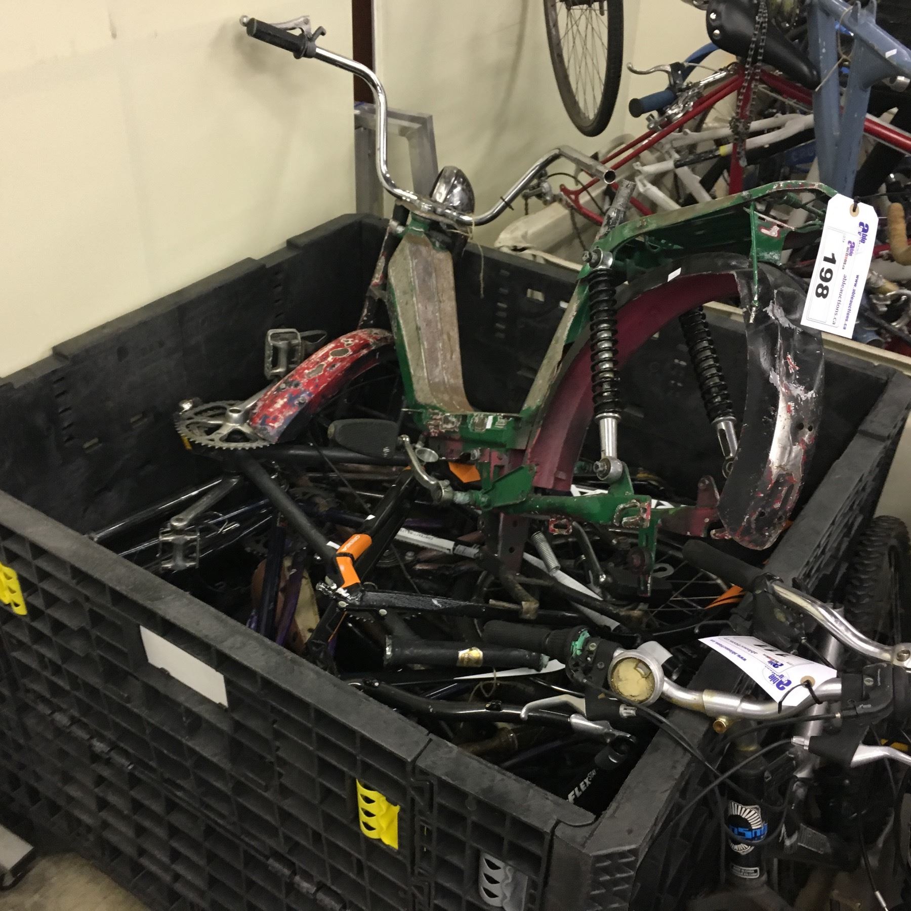 LOT OF ASSORTED BIKE FRAMES AND PARTS, BIN NOT INCLUDED