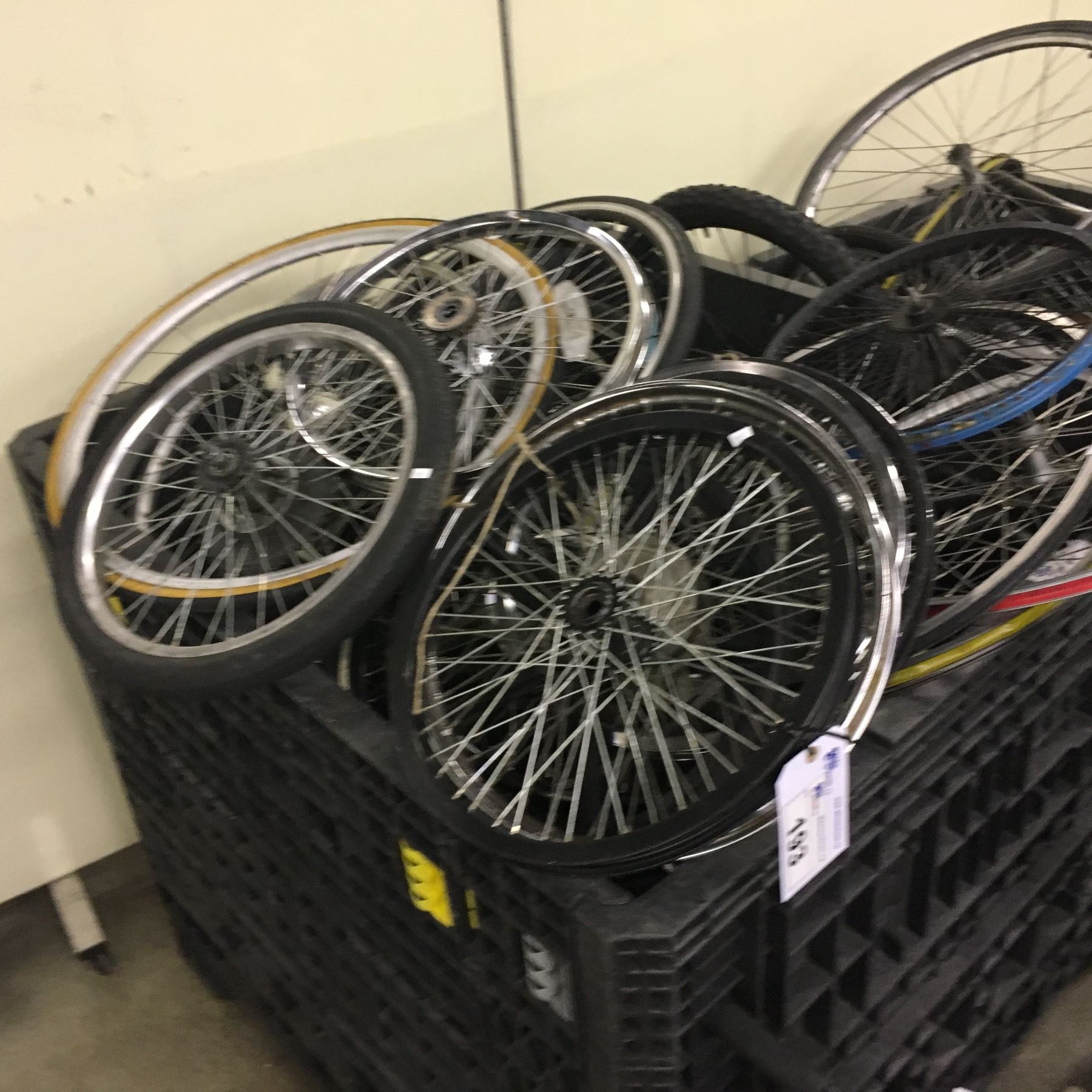 LOT OF ASSORTED BIKE WHEELS AND RIMS, BIN NOT INCLUDED