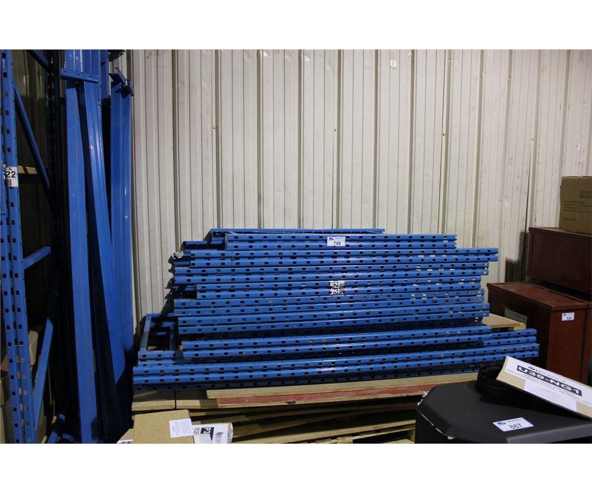 LOT OF ASSORTED BLUE PALLET RACKING AND WOODEN SHELVES