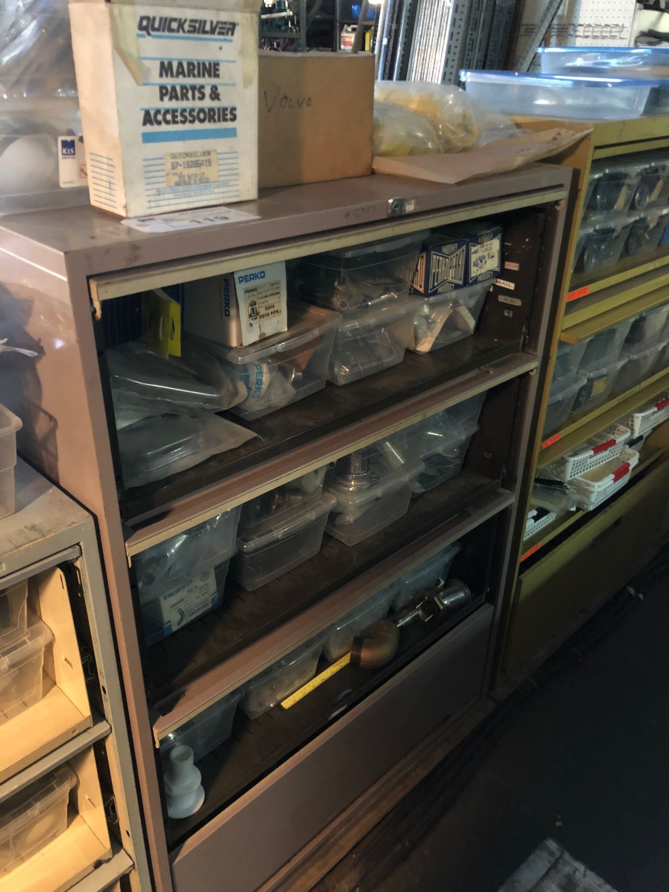 LOT OF ASSORTED BOAT/MARINE PARTS, COMES WITH MOBILE STORAGE CABINET