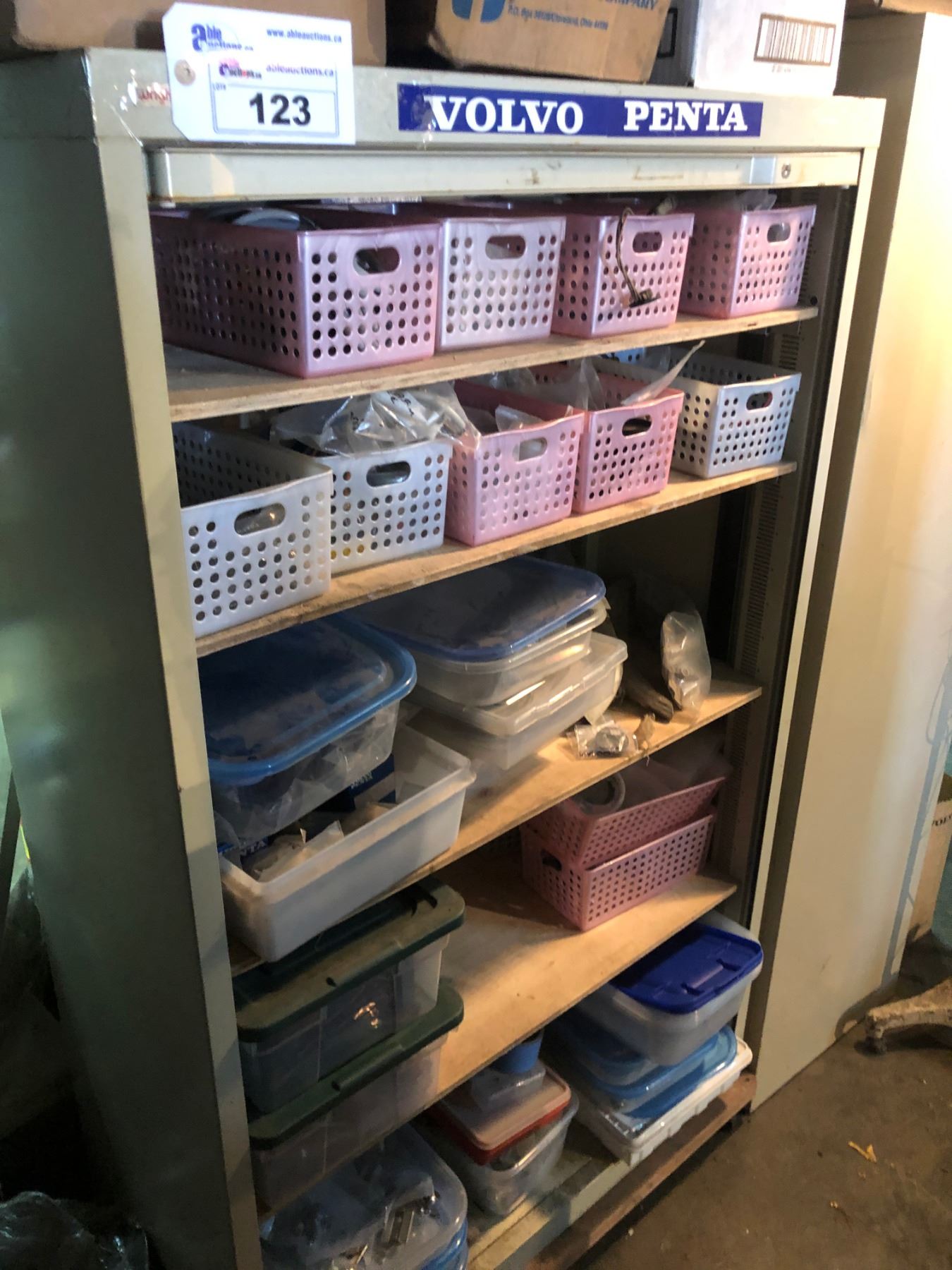 LOT OF ASSORTED BOAT/MARINE PARTS, COMES WITH MOBILE STORAGE CABINET